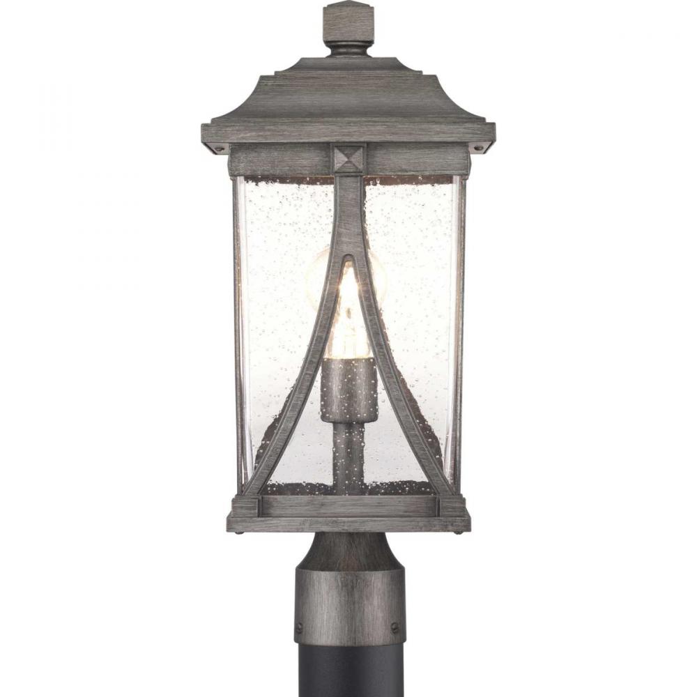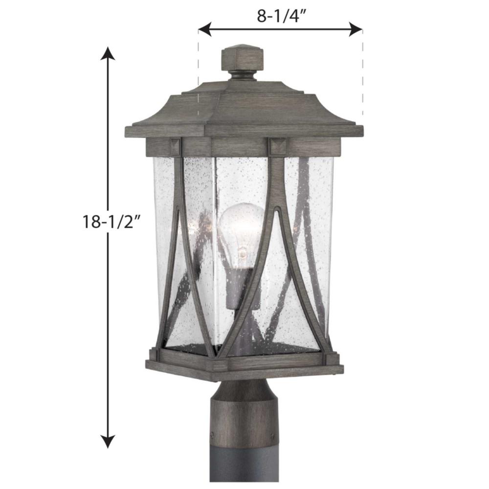 Clear seeded glass, heavy forged details and curving metal accents hearkens back to a Colonial era;The post lantern makes a distinguished greeting at your home’s front walk;The classic lines and sweeping details of the lantern design make it ideal for Tr