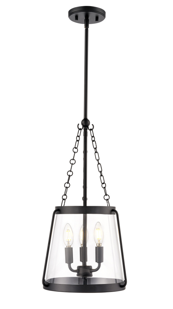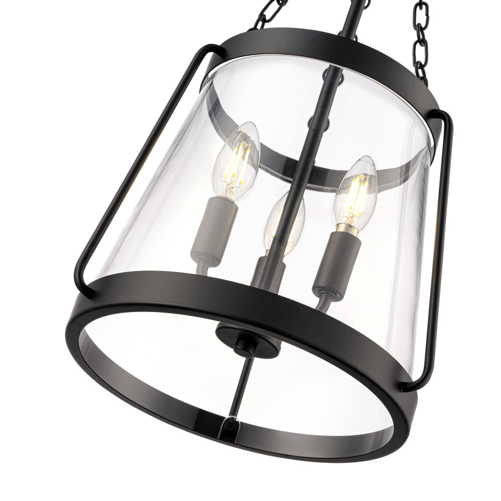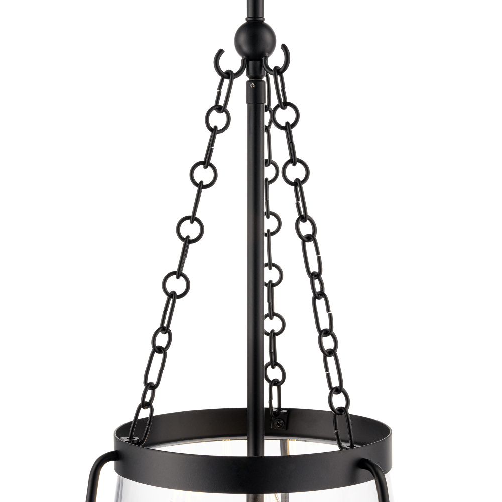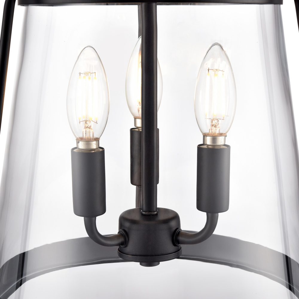 Finished in matte black with clear glass shades.