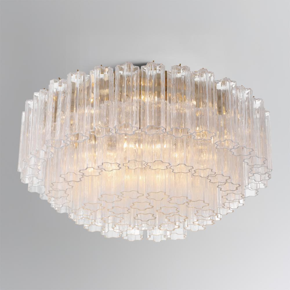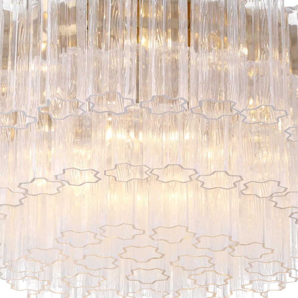 The captivating Addis Lighting Collection is a modern-day interpretation of the iconic mid-century Tronchi chandelier. Inspired by its predecessor's sleek lines and geometric shapes, the Addis features a polished Chrome or Aged Brass metal frame that exudes sophistication and style. Its unique design showcases transparent tiers of textured Tronchi glass tubes, forming a mesmerizing 5-point rounded star shape. Choose from a range of glass colors, including clear, amber, smoke, and white, or the stunning Autumn option, which features a captivating multicolor disposition of amber, clear, and smoke Tronchi glass. The Addis Lighting Collection offers various sizes and finishes, allowing you to find the perfect fit for your space while adding a touch of timeless elegance.