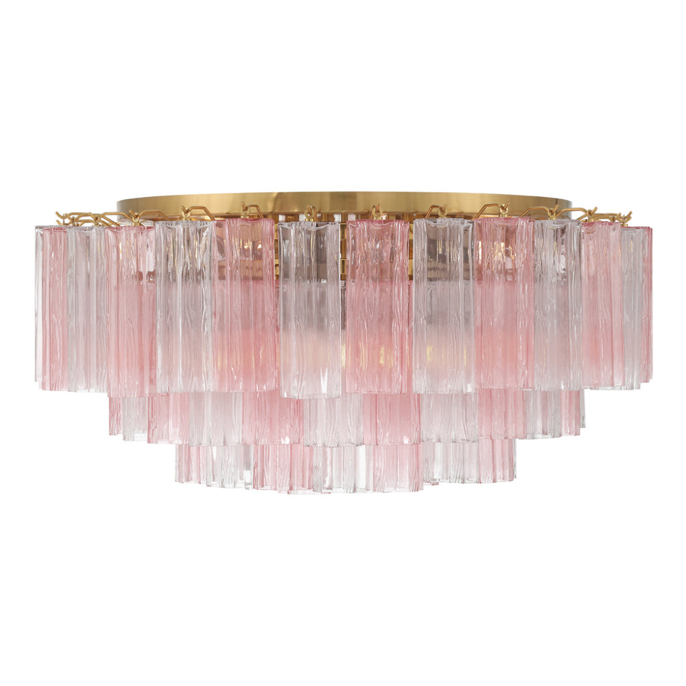 The captivating Addis Lighting Collection is a modern-day interpretation of the iconic mid-century Tronchi chandelier. Inspired by its predecessor's sleek lines and geometric shapes, the Addis features a polished Chrome or Aged Brass metal frame that exudes sophistication and style. Its unique design showcases transparent tiers of textured Tronchi glass tubes, forming a mesmerizing 5-point rounded star shape. Choose from a range of glass colors, including clear, amber, smoke, and white, or the stunning Autumn option, which features a captivating multicolor disposition of amber, clear, and smoke Tronchi glass. The Addis Lighting Collection offers various sizes and finishes, allowing you to find the perfect fit for your space while adding a touch of timeless elegance.