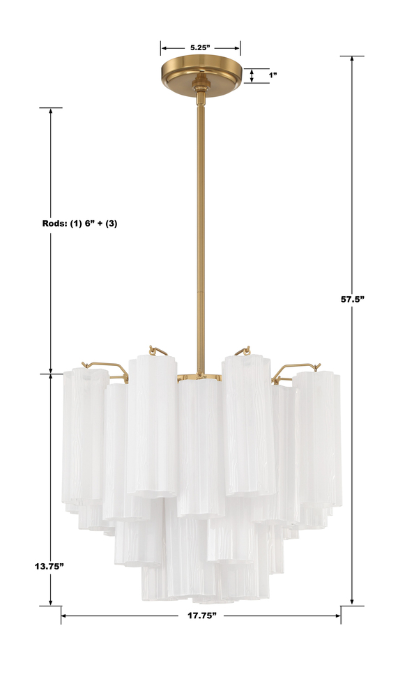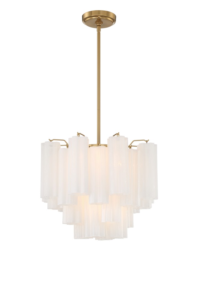 The captivating Addis Lighting Collection is a modern-day interpretation of the iconic mid-century Tronchi chandelier. Inspired by its predecessor's sleek lines and geometric shapes, the Addis features a polished Chrome or Aged Brass metal frame that exudes sophistication and style. Its unique design showcases transparent tiers of textured Tronchi glass tubes, forming a mesmerizing 5-point rounded star shape. Choose from a range of glass colors, including clear, amber, smoke, and white, or the stunning Autumn option, which features a captivating multicolor disposition of amber, clear, and smoke Tronchi glass. The Addis Lighting Collection offers various sizes and finishes, allowing you to find the perfect fit for your space while adding a touch of timeless elegance.