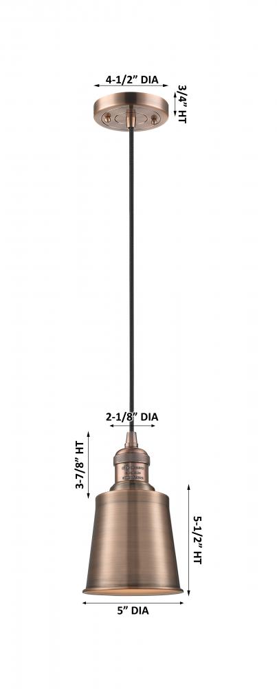 Addison - 1 Light - 5 inch - Antique Copper - Cord hung - Mini Pendant