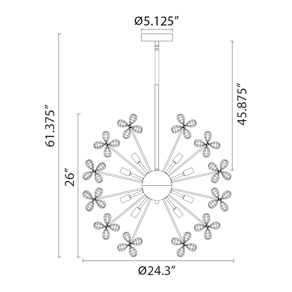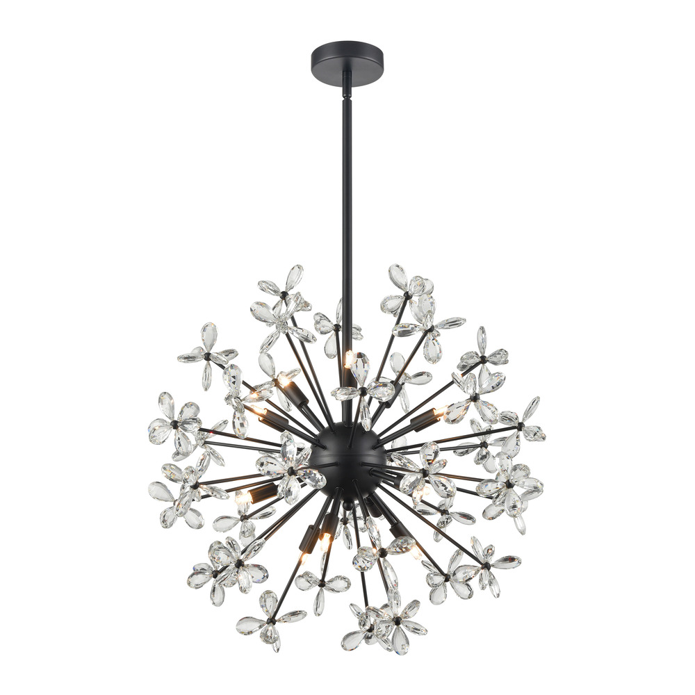 12-Light Floral Crystal Pedal Sputnik Matte Black Pendant Light.