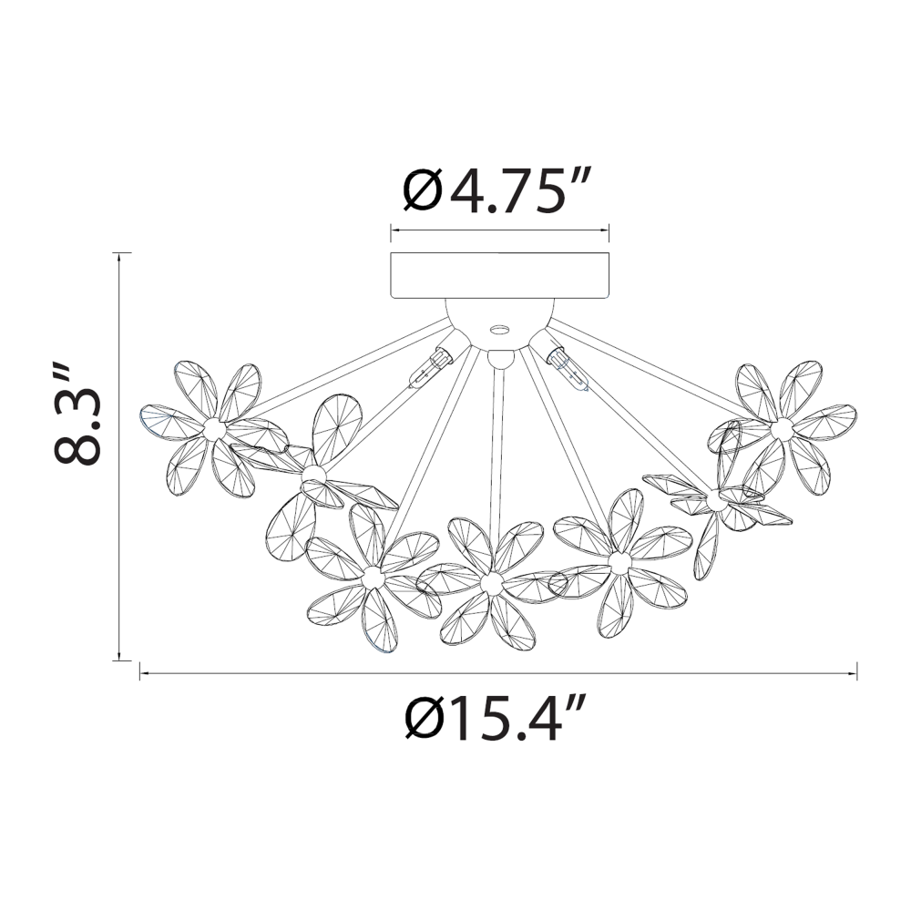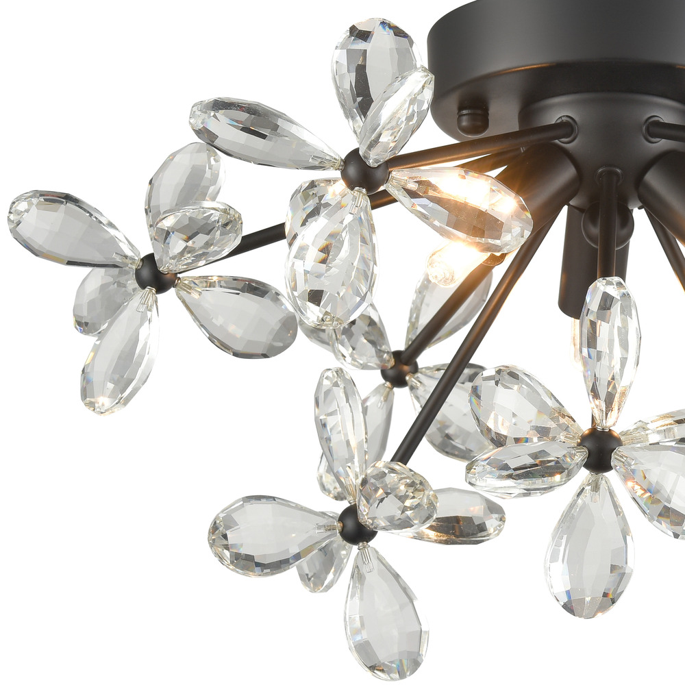 3-Light Floral Crystal Pedal Sputnik Matte Black Flush Mount.