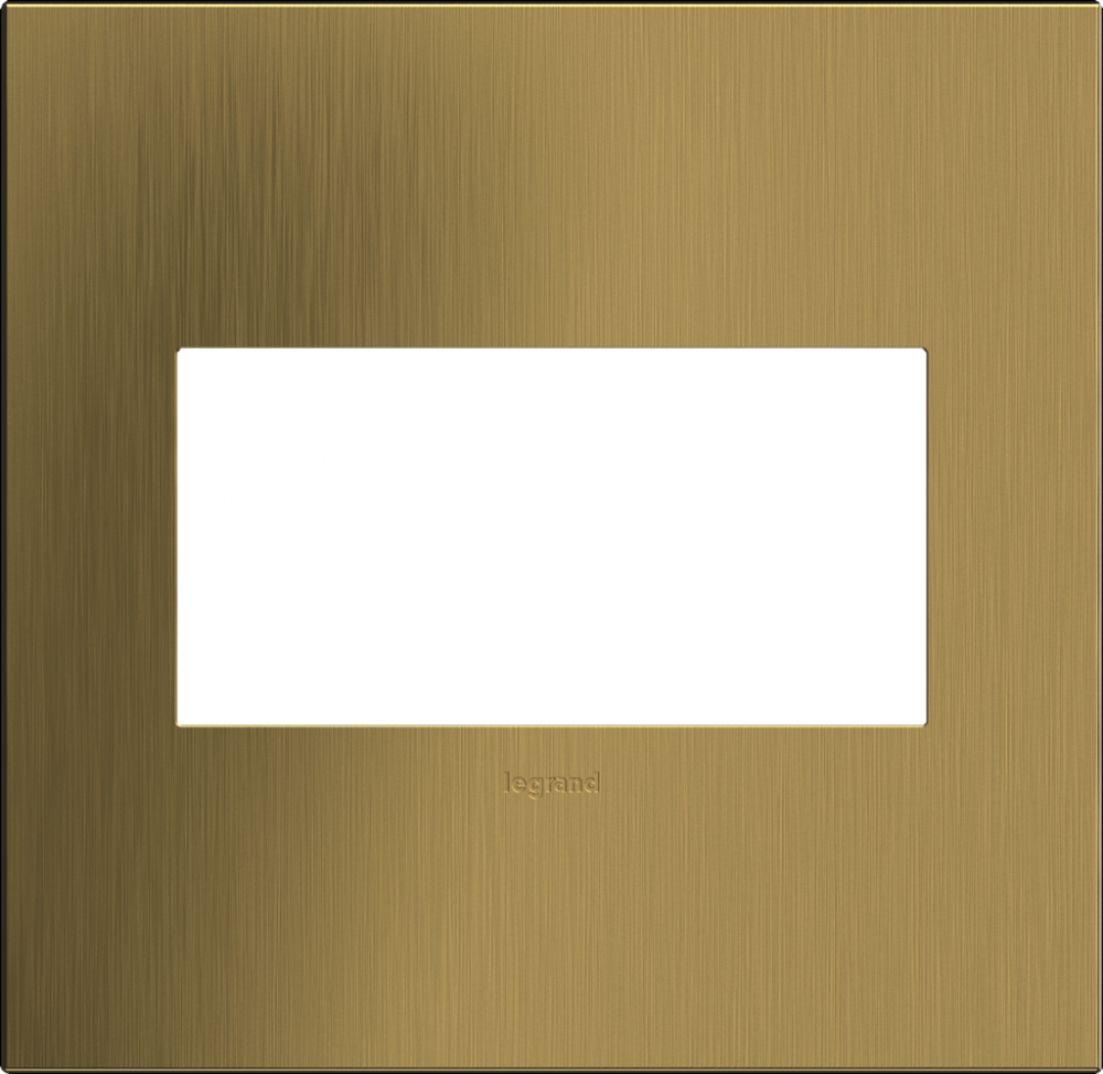 Classic brass goes modern in a milder metallic that transforms spaces with understated elegance. A 1-Gang Wall Plate, it is perfectly sized to fit a standard-sized adorne device, or any combination of two half-sized adorne designer switches or outlets.