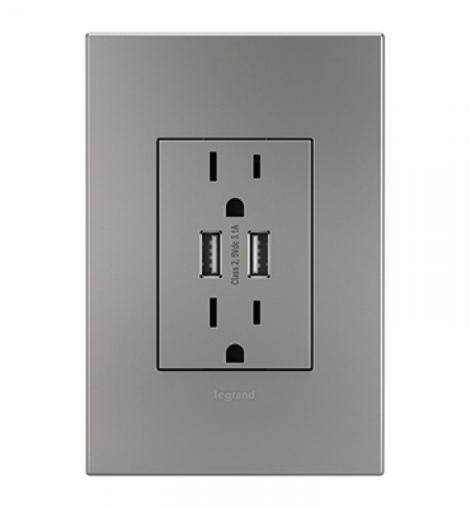 adorne Dual-USB Outlet , Magnesium