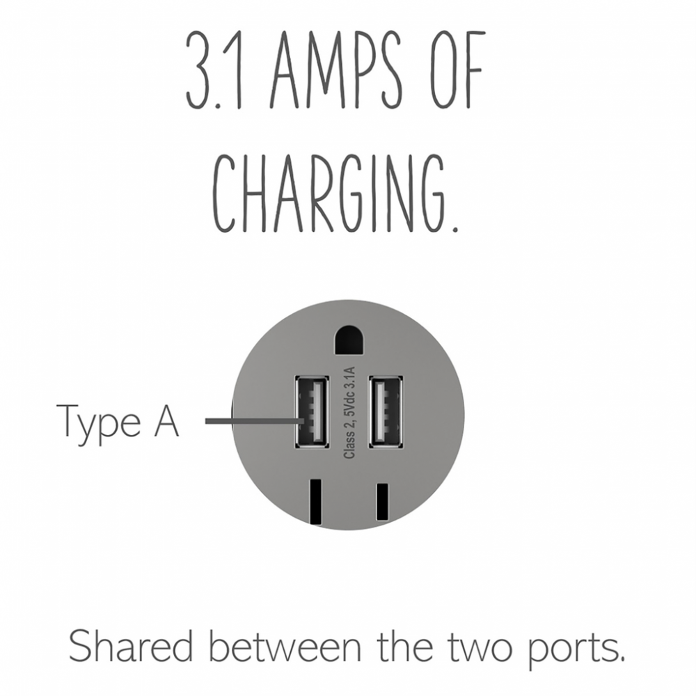 Get a full battery for your phones, tablets and more with the convenience of built-in charging. Including two USB Type-A connections and replacing a traditional outlet in as little as ten minutes, this adorne USB Outlet provides easy-to-access charging without sacrificing a plug or finding that bulky adapter. Made exclusively for use with screwless Wall Plates from the adorne? Collection, sold separately.