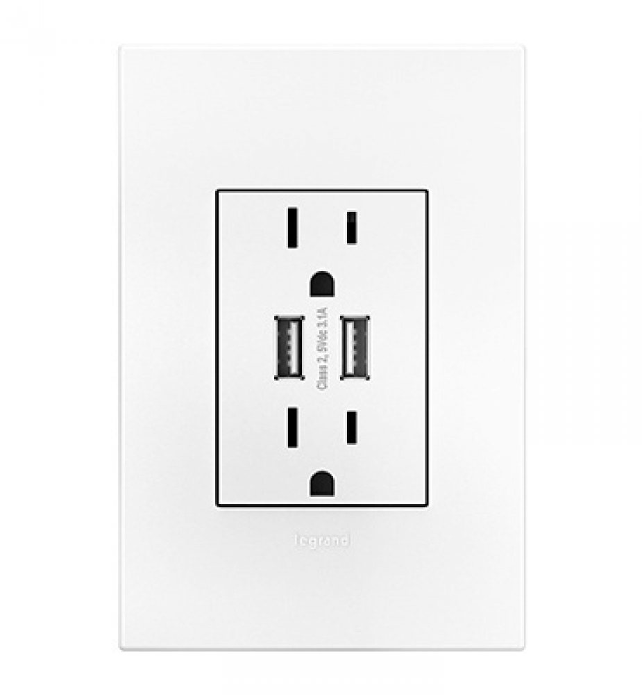 adorne Dual-USB Outlet with Gloss White Wall Plate, White