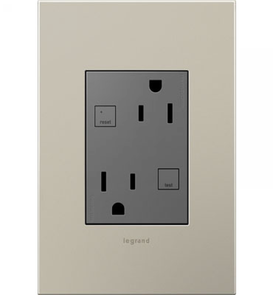 Add contemporary style, safely, to kitchens, bathrooms and more, with GFCI Outlets from the adorne Collection. Meeting Electrical Code* for ground fault protection in the home, GFCI outlets make it easier to fix trips right where they happen ? no more confusion or running to the breaker box. The adorne GFCI Outlets also self-test automatically every three seconds to ensure reliable protection from shock due to ground fault occurrences. *GFCI protection is required by code in bathrooms, kitchens, garages, basements, outdoor areas, and for any other outlets found within six feet of a sink or water source. GFCI outlets should always be used when replacing existing GFCI outlets during renovation.Made exclusively for use with screwless Wall Plates from the adorne? Collection, sold separately.