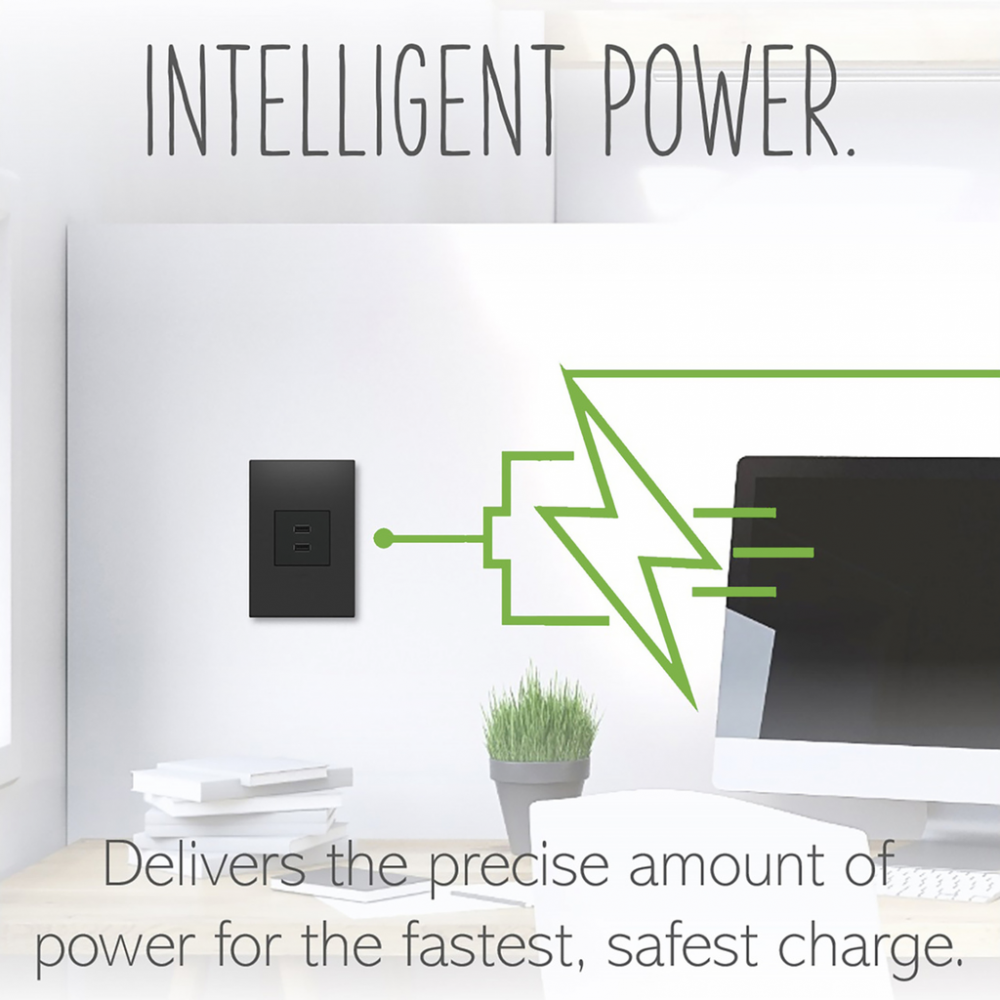 Charge phones, tablets and more up to 40% faster, with Ultra-Fast USB Outlets from the adorne? Collection. Delivering a leading 6 amps of power to its two USB connections for faster in-wall charging, without an adapter. Made exclusively for use with screwless Wall Plates from the adorne? Collection, sold separately.