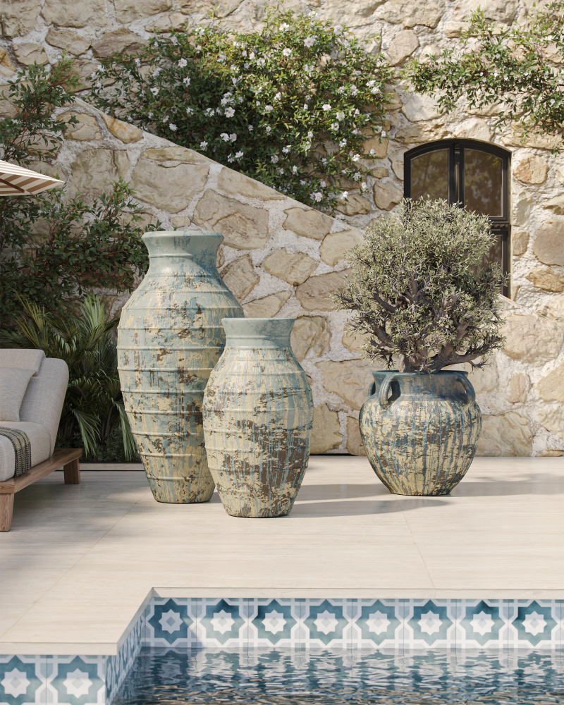 Bring the garden indoors (or enhance outdoor spaces) with the Agrigento Blue Drip Planter and its strong Mediterranean vibe. Inspired by classic shapes that have been staples in Italian gardens for centuries, this aged white planter has pitting in its terracotta surface to create the effect of a true antique.