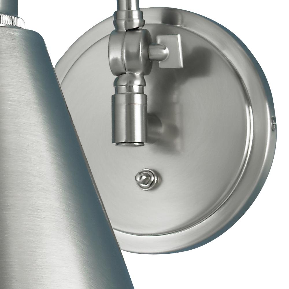 This versatile wall sconce adjusts at three different points and includes an ON/OFF switch on the backplate. This can be hardwired or plugged into the wall.