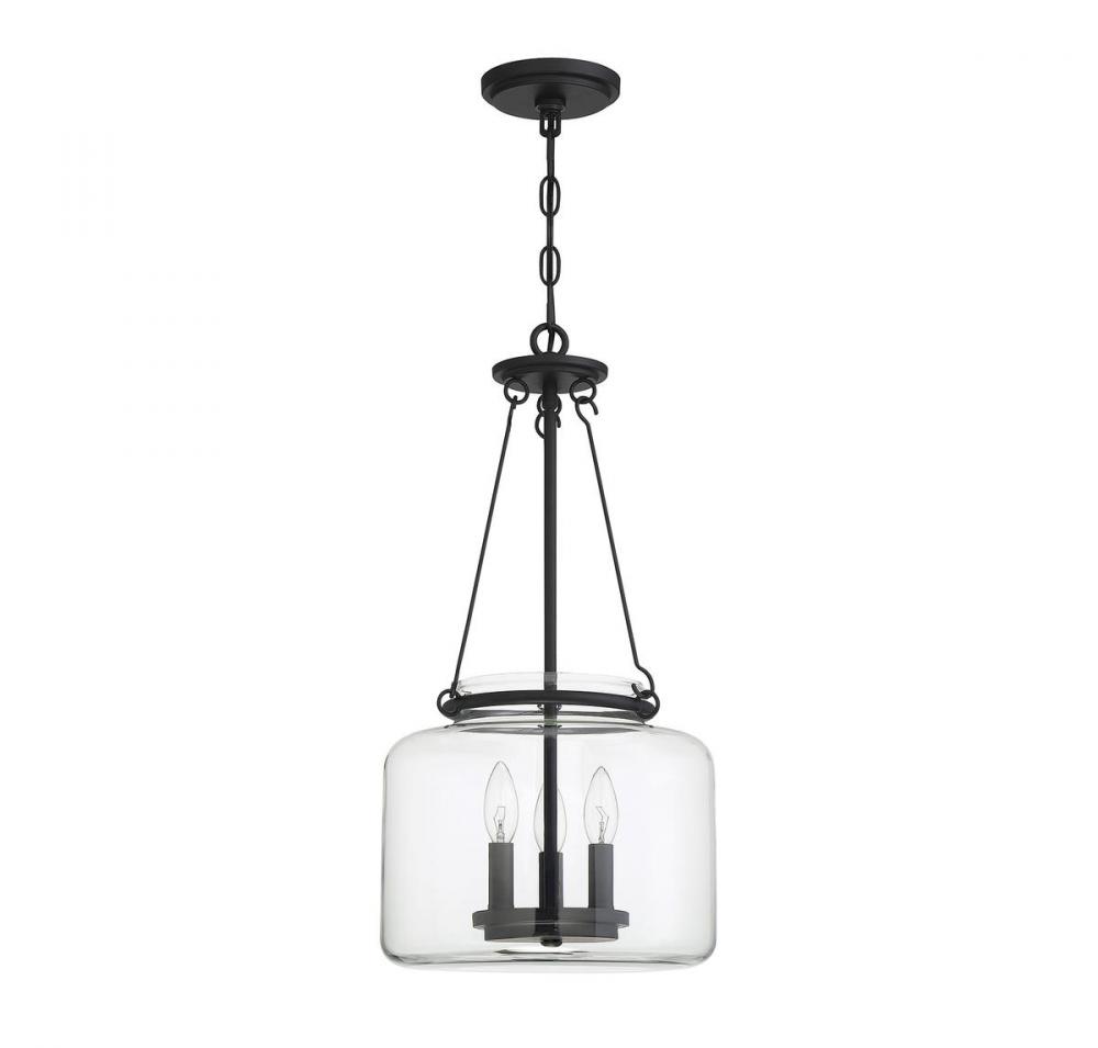 The Akron pendant proves that a classic, simple style can be stunning! The square jar-like, clear glass shade surrounds an inner disc-shaped light structure with three metal candle covers. The entire frame has clean lined details and a superb matte black finish —created exclusively for Savoy House by designer Brian Thomas. It has a comfortable, nostalgic appeal that blends very well with transitional, traditional, vintage, and other decor styles. Three 60W, C-style bulbs provide plenty of illumination through the pristine, clear glass. The Akron measures 12” wide and 24” high. And it brings a touch of vintage inspiration to your dining room, kitchen, living room, foyer, family room, office, bedroom, stairway, or great room.