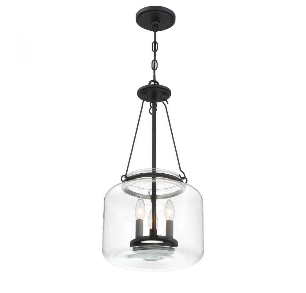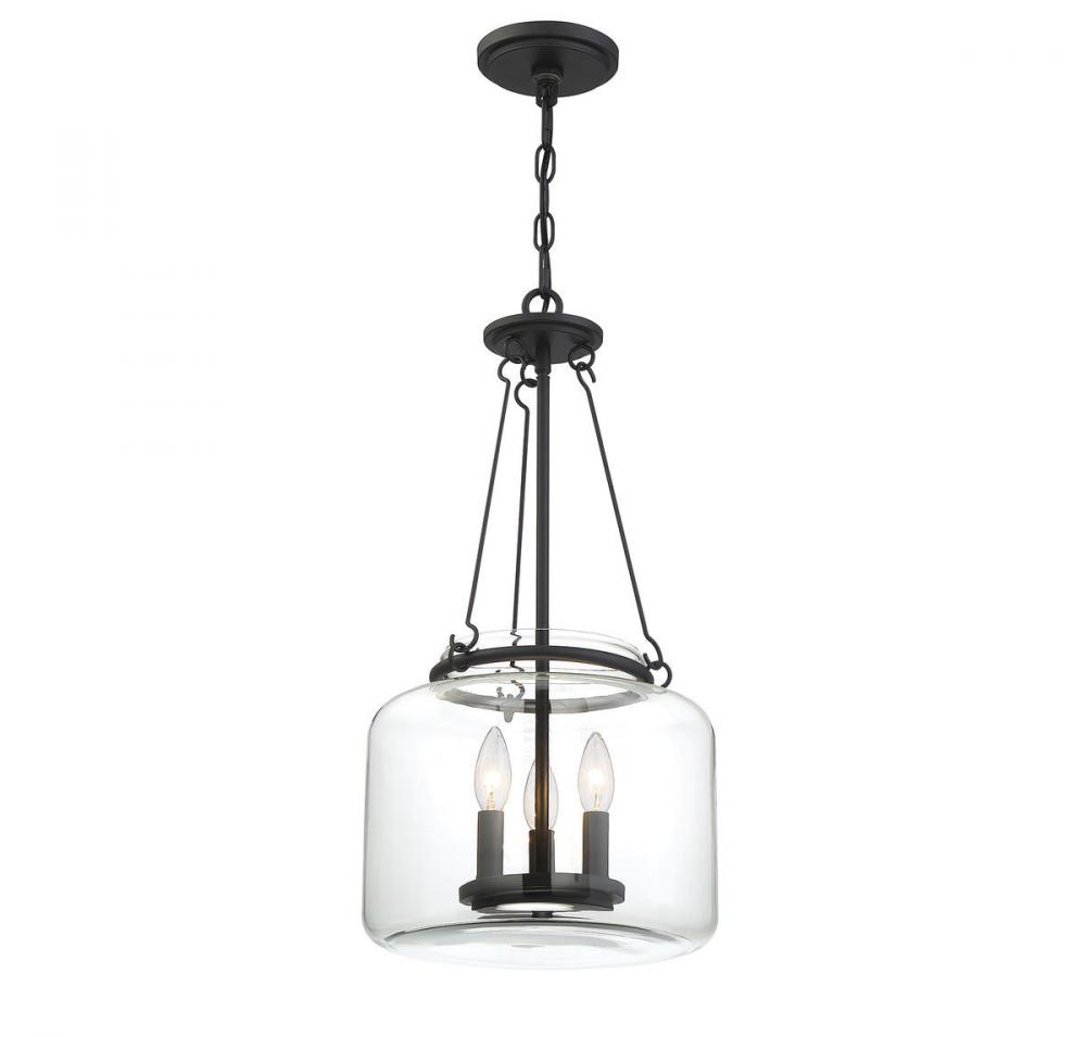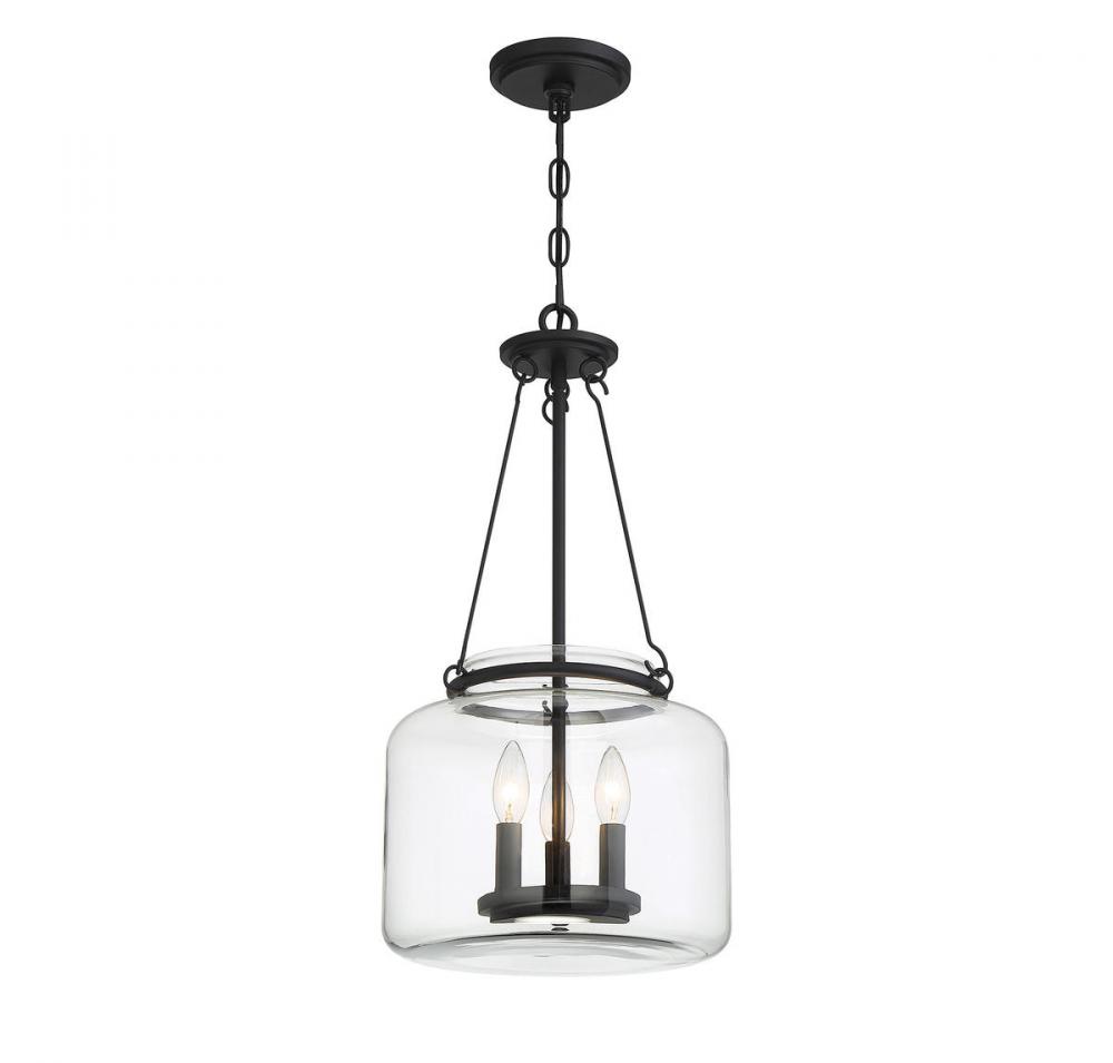 Created exclusively for Savoy House by designer Brian Thomas, the Akron pendant proves that a classic, simple style can be stunning! The clear glass shade surrounds an inner disc-shaped light structure with three metal candle covers finished in matte black. It has a comfortable, nostalgic appeal that blends very well with transitional, traditional, vintage and other decor styles. Three 60W candelabra size bulbs provide plenty of illumination through the pristine clear glass. The Akron measures 12" wide and 24" high and it brings a touch of vintage inspiration to your dining room, kitchen, living room, foyer, family room, office, bedroom, stairway or great room.