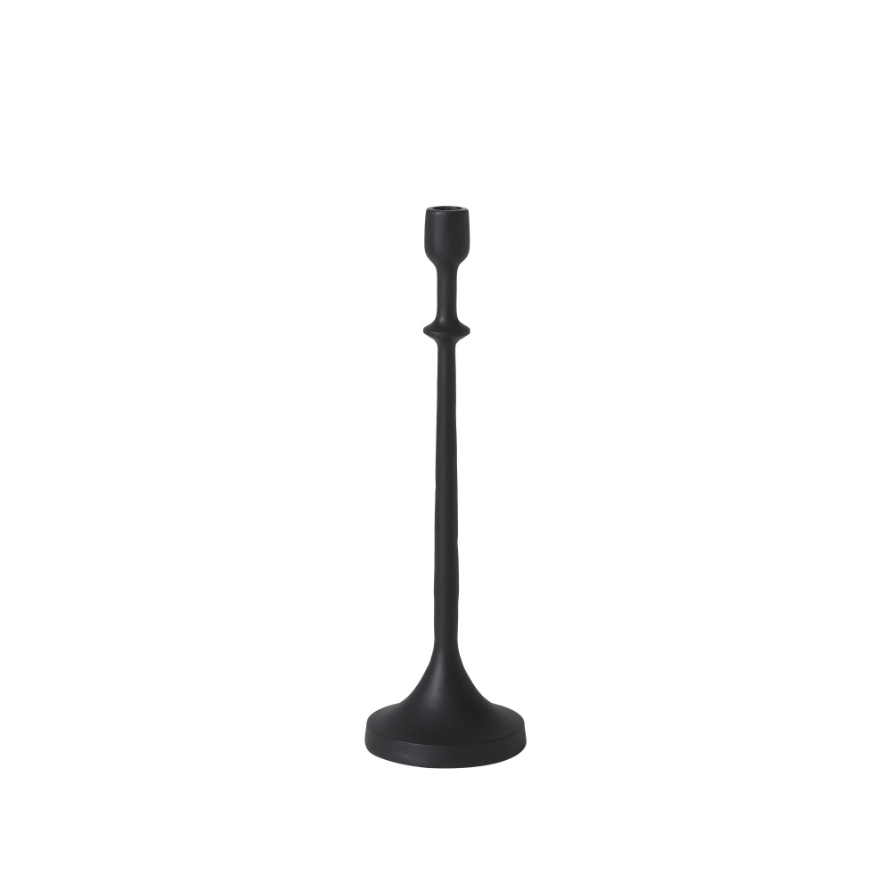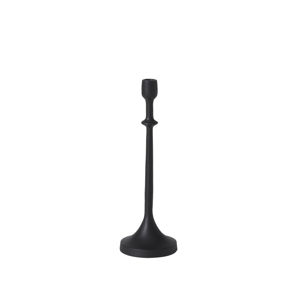Perfect for contemporary and transitional interiors, this pair of candlesticks will add a modern rustic touch to your design project. Designed with a matte black-painted finish for a wrought iron look, this handsome duo of aluminum candle holders will make a timeless impact on a fireplace mantle, dining buffet or kitchen table.