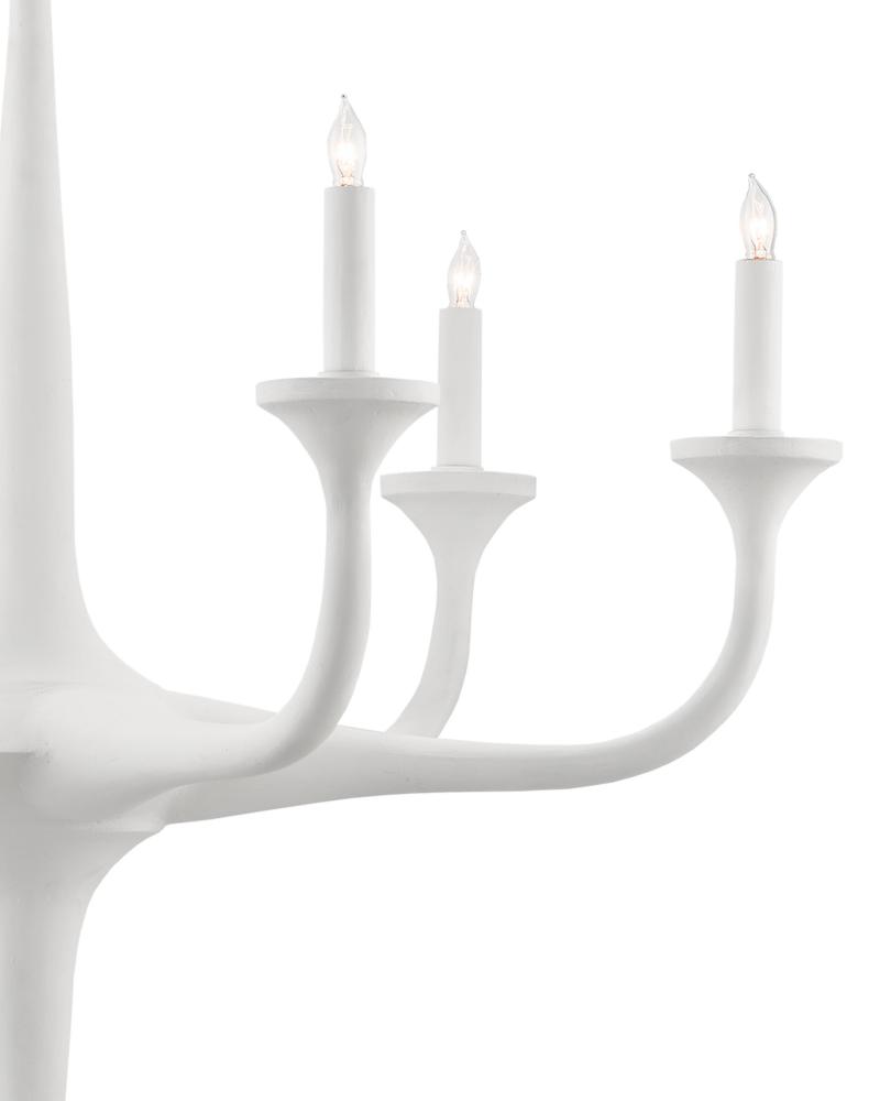 The Albion Chandelier seems far too ethereal to be made of wrought iron, but that is the material this white chandelier is fashioned from. The Albion is so smoothly covered in a gesso white finish that it reads like it has been sculpted from a pliable material. Adjustable from 39" to 108" with use of included chain/rod kit/cable. If your space calls for a longer drop, additional chain/rods/cable is available for purchase.
