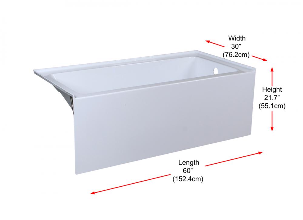 Immerse yourself in the pinnacle of modern bathing luxury with our alcove-style bathtub. Crafted with precision from a blend of top-tier acrylic, resin, and fiberglass, the bathtub is the epitome of style and functionality. Choose between a left or right drain configuration to suit your bathroom layout, ensuring a perfect fit for your space.