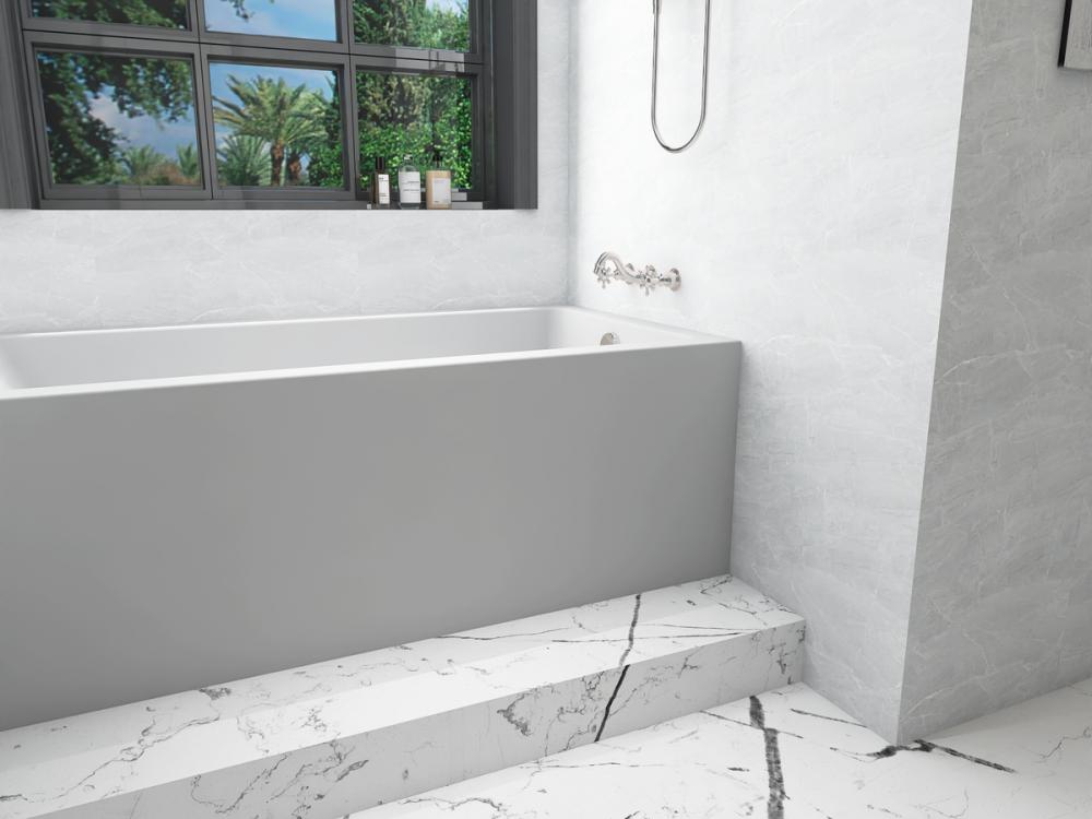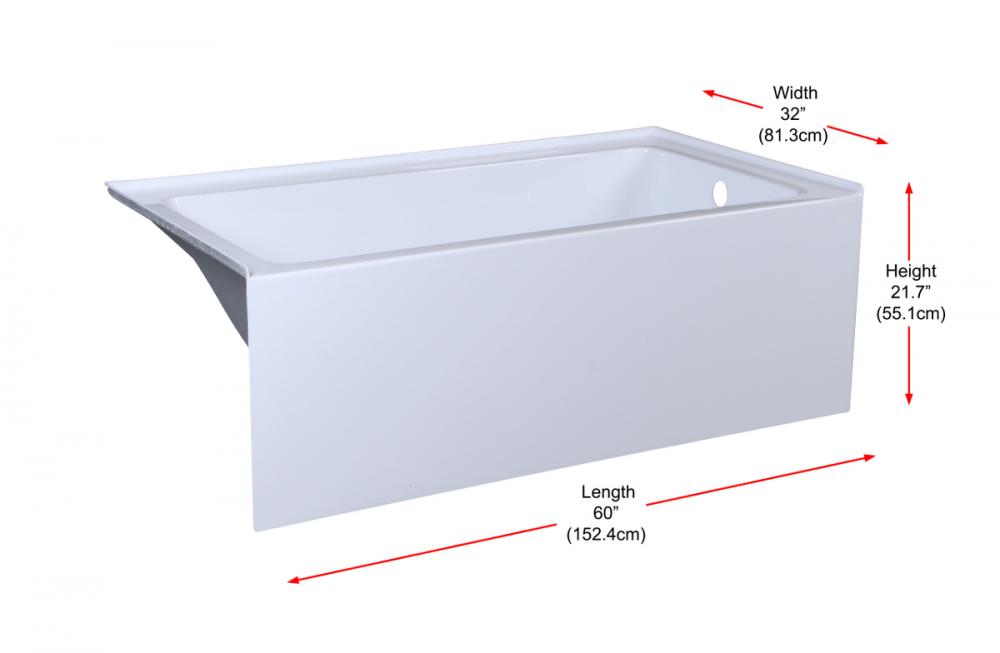 Immerse yourself in the pinnacle of modern bathing luxury with our alcove-style bathtub. Crafted with precision from a blend of top-tier acrylic, resin, and fiberglass, the bathtub is the epitome of style and functionality. Choose between a left or right drain configuration to suit your bathroom layout, ensuring a perfect fit for your space.