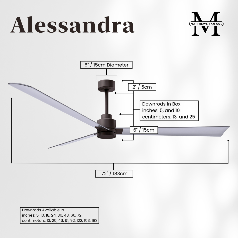 Minimal form with maximum efficiency. With a wide range of sizes, the Alessandra can accommadate any size space. This thoughtfully crafted and versatile fan will complement any aesthetic and improves the health and comfort of any room. Highly customizable, the Alessandra is available in 5 different body finishes, 6 blade options and even a color changeable light kit. Suitable for fully exposed outdoor areas. Backed by a limited lifetime warranty, our fans are of the highest quality and will dutifully perform for years to come.