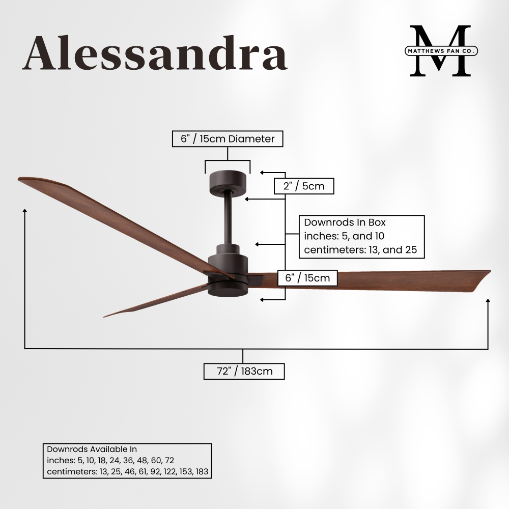 Minimal form with maximum efficiency. With a wide range of sizes, the Alessandra can accommadate any size space. This thoughtfully crafted and versatile fan will complement any aesthetic and improves the health and comfort of any room. Highly customizable, the Alessandra is available in 5 different body finishes, 6 blade options and even a color changeable light kit. Suitable for fully exposed outdoor areas. Backed by a limited lifetime warranty, our fans are of the highest quality and will dutifully perform for years to come.