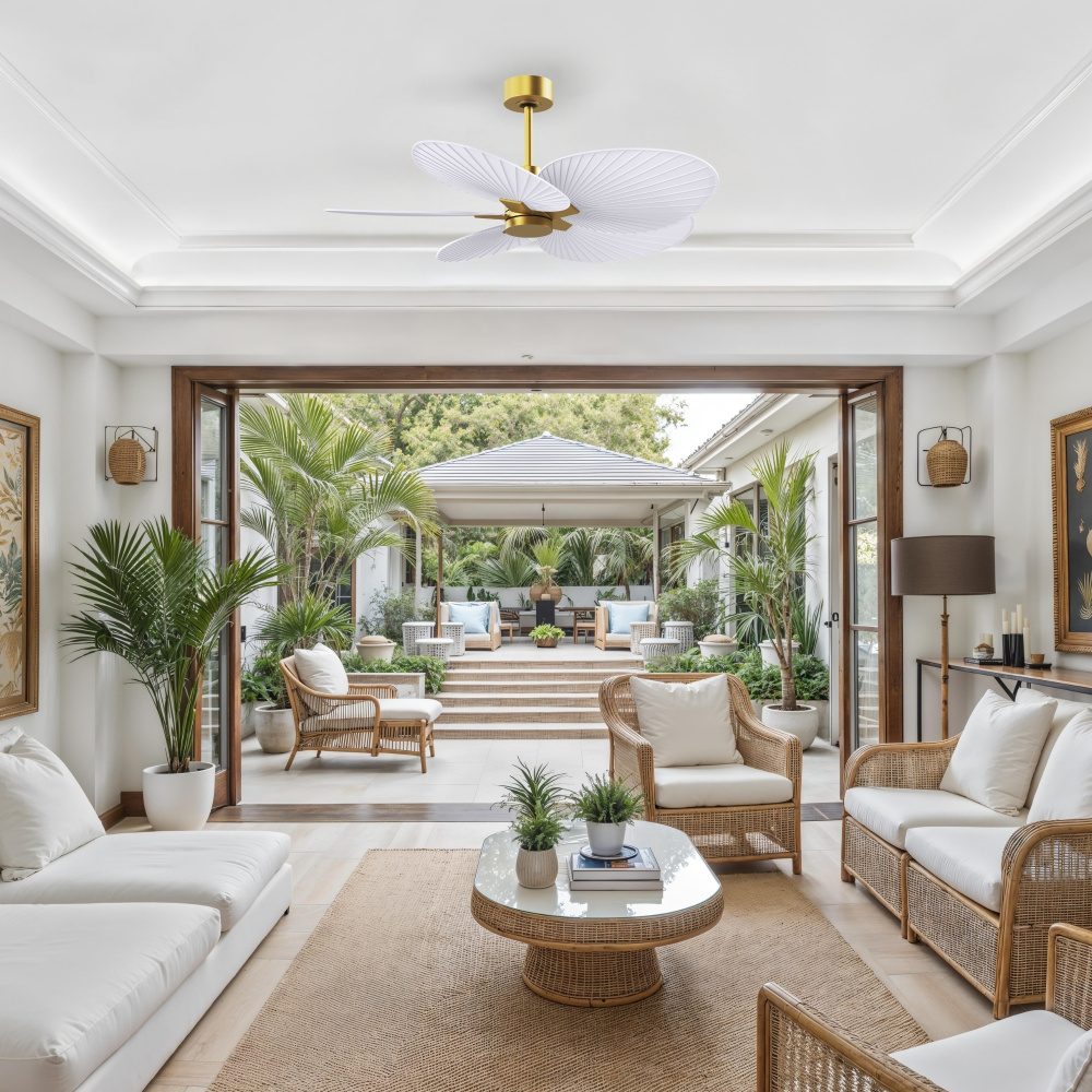 Alessandra Tropical - Five Blade Ceiling Fan - Brushed Brass Finish - Matte White Blades