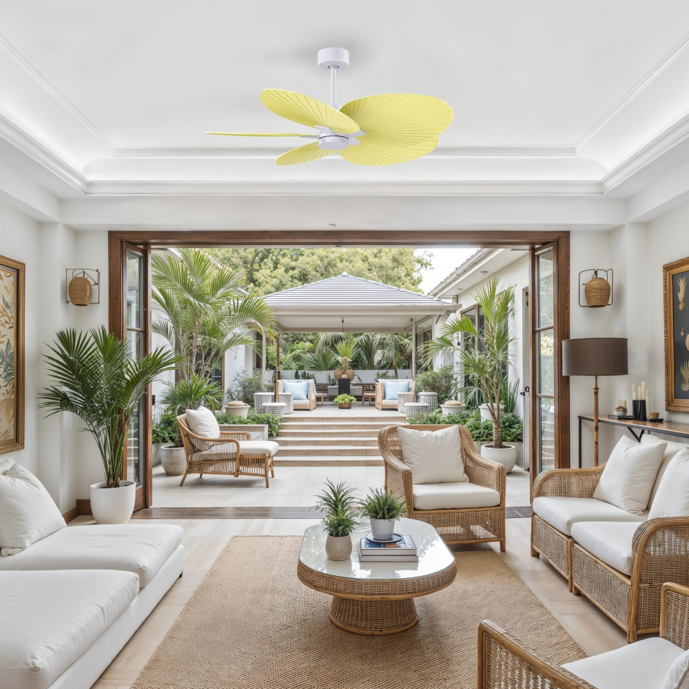 Alessandra Tropical - Five Blade Ceiling Fan - Matte White Finish - Light Yellow Blades