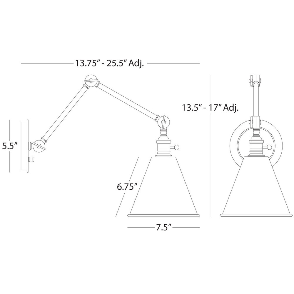 Alloy Wall Sconce in Polished Nickel Finish and matching metal shade has a sleek mechanical function in mind. Crisp geometry and polished metal make this piece the perfect choice to elevate your space.