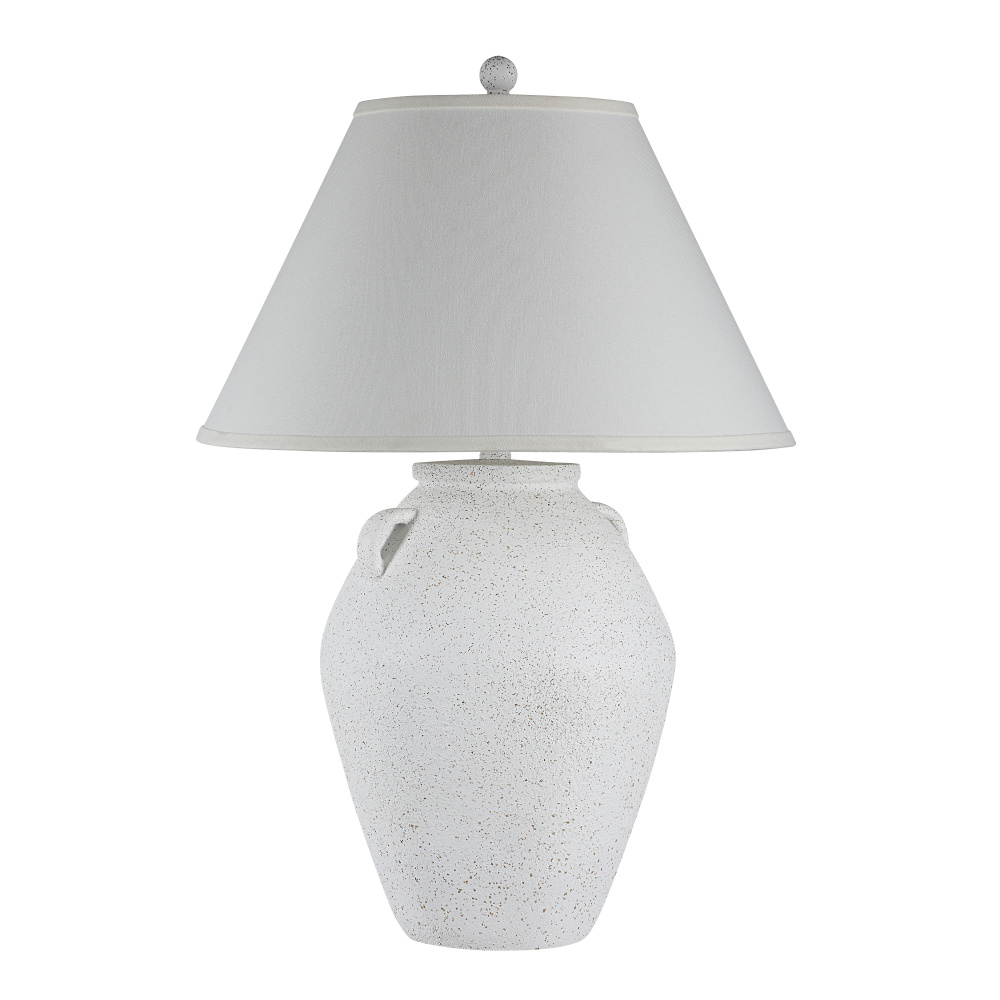 Just the thing to complete the look of your latest transitional design project, this timeless table lamp will light up the room in classic style. Featuring a double-handled jar silhouette and an off-white hand-painted patina, this clay-look lamp delivers enduring charm to any space. Finished off with an ivory drum shade, the result is warm and welcoming.