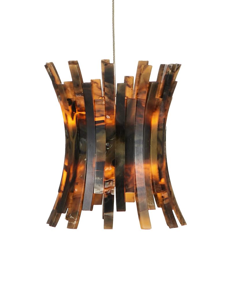The shades of the Alsop 30-Light Multi-Drop Pendant were inspired by tortoise shell bracelets that were popular during the era when Hollywood glamour was at its height. Made of composite with faux-horn surfaces, the shades on the brown pendant will be warm elements in a space. A refined aspect of the design is how the ribs arc outward and how they are staggered for greater texture than their surfaces bring. The canopy of this piece is luminous in a painted silver finish. This fixture is among Currey & Company's introduction of cluster lights, which includes multiple configurations.