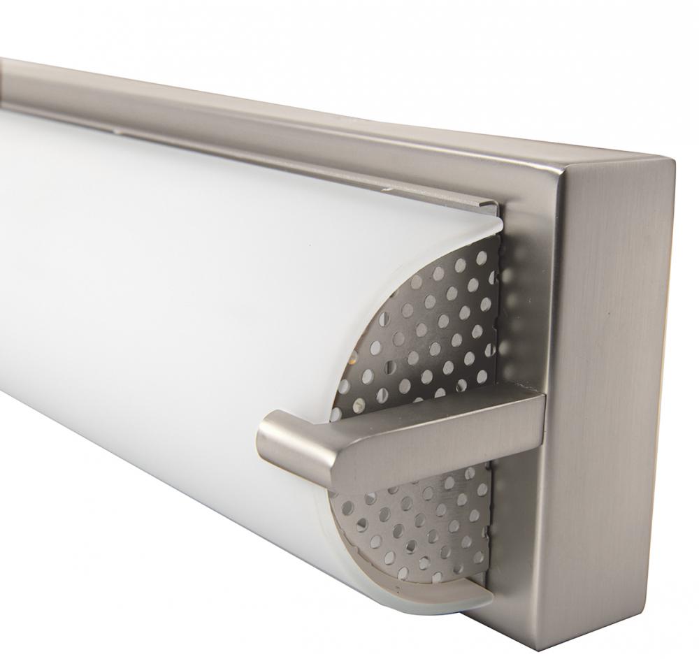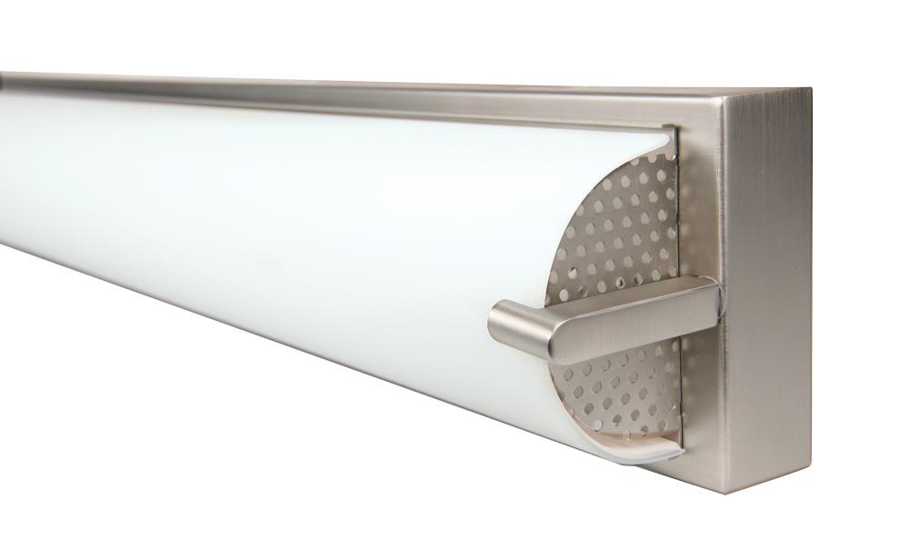 Featuring elegantly floating curved Matte Opal glass and a full length back plate, this beautiful linear LED sconce is versatile available in 18, 24 and 36 inch lengths; mount the sconce horizontally or vertically for fresh, clean light in a variety of spaces.