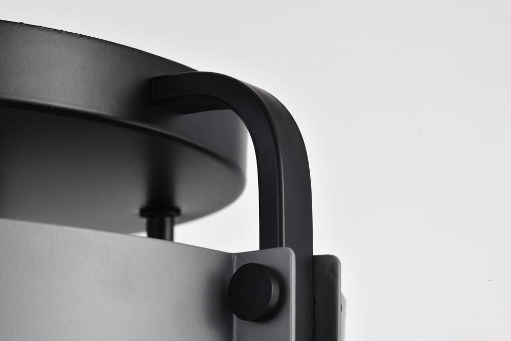 The Altos Collection adds a touch of drama and intrigue to any space. The gray accents provide a coolness to the industrial-inspired construction, which is finished in a velvety, matte black. The meticulous attention to detail in the laser-cut shade and ma