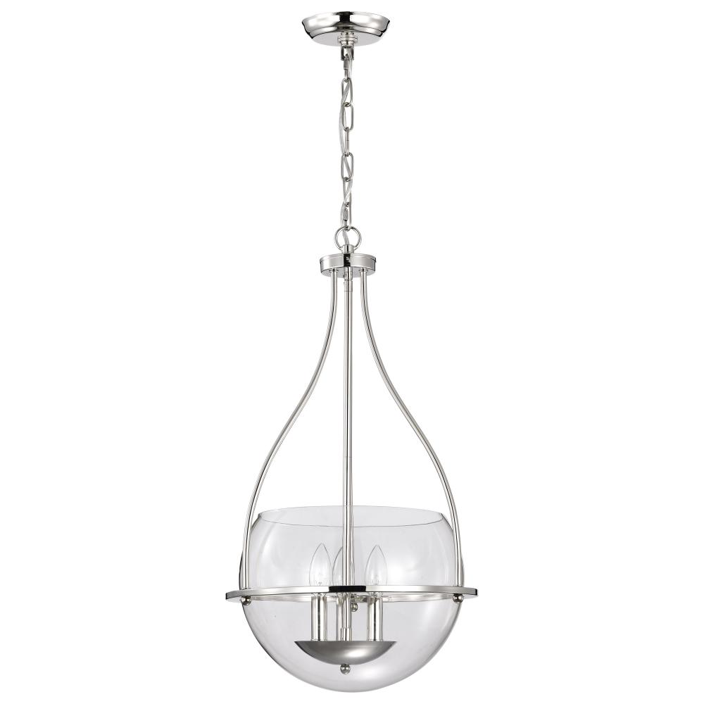 Amado 3 Light Pendant; 14 Inches; Polished Nickel Finish; Clear Glass
