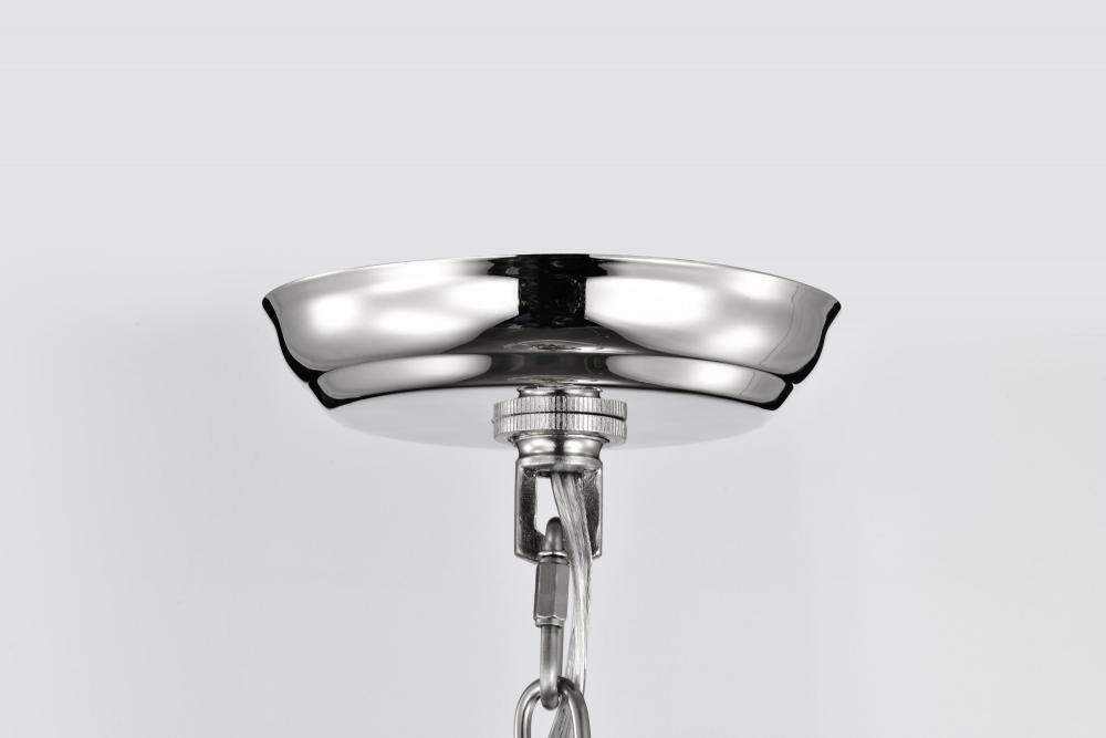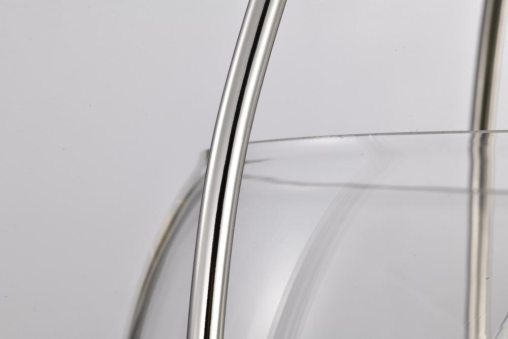 Elegant, transitional allure completes the Amado 60-7819 medium pendant with it's unassuming style. The sleekness of polished nickel brings graceful refinement and the clear glass bowl delicately showcases the light and is encompassed in graceful lines