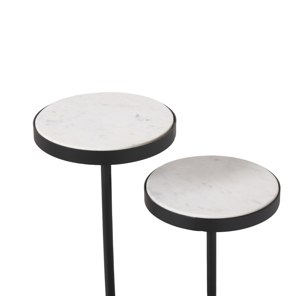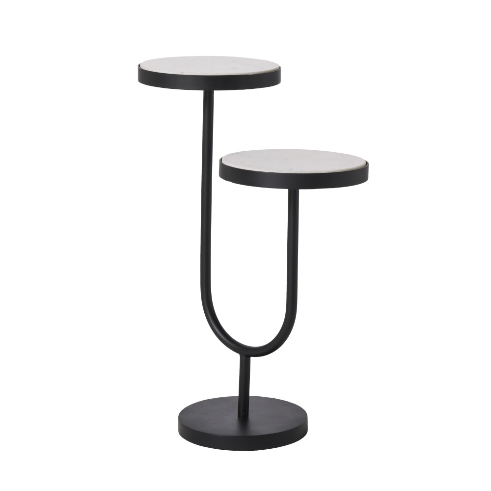 Create a stylish focal point in spaces big or small with this modern two-tier accent table. Designed with timeless materials, this matte black iron and natural marble piece delivers high-contrast impact next to a sofa or lounge chair. Featuring not one, but two spots to perch a drink and decorative objects, this side table keeps things within reach without sacrificing style.