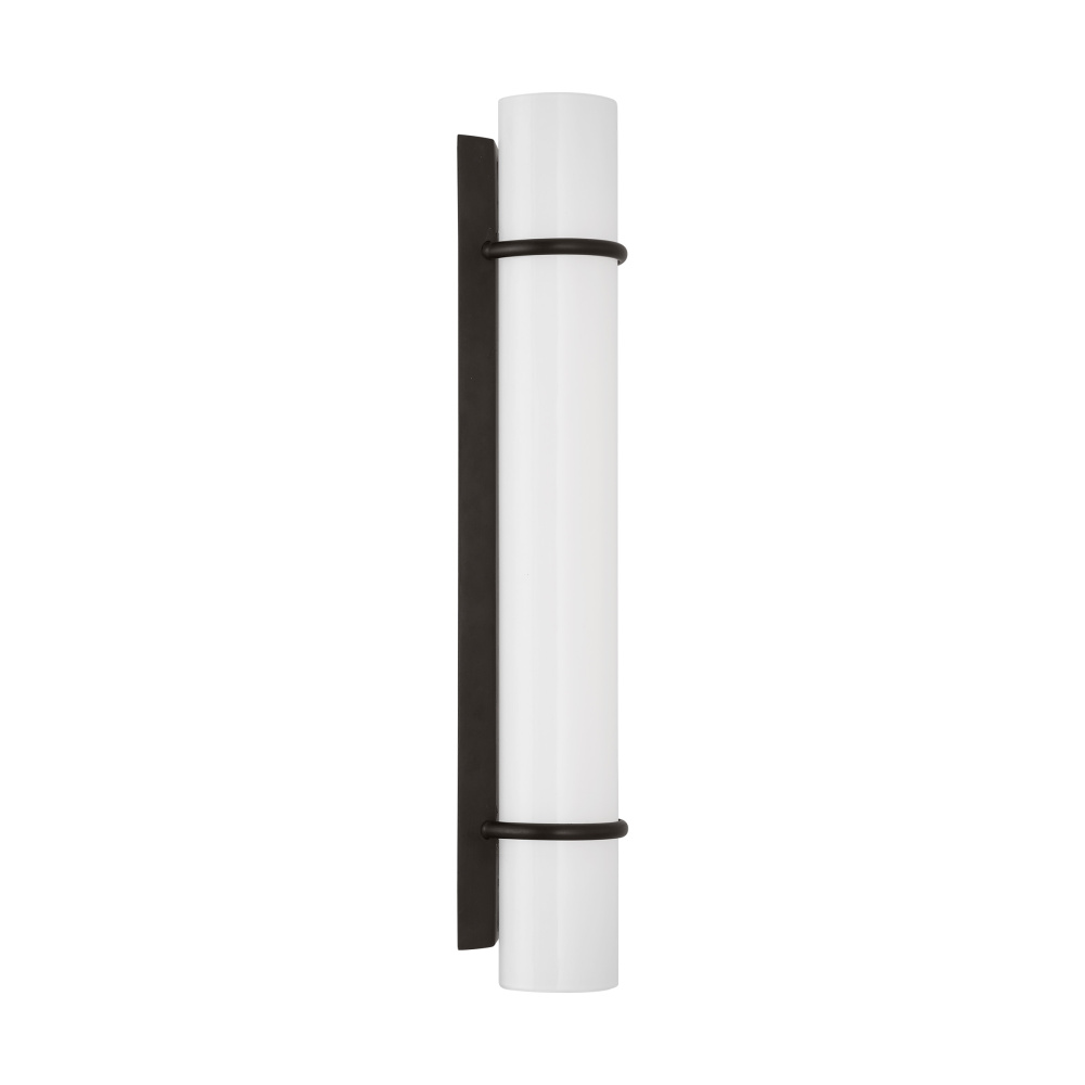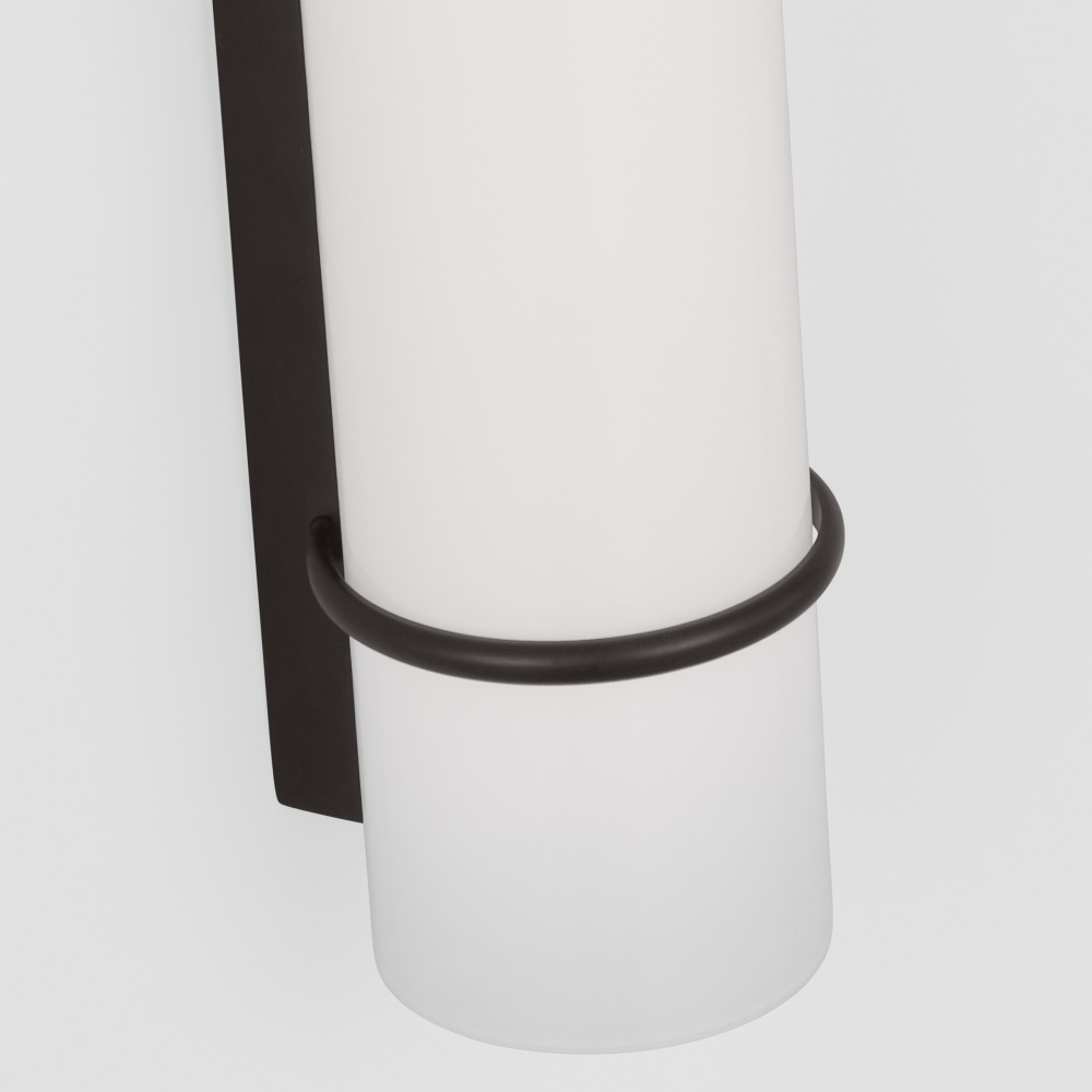 The Amelie Integrated LED vanity series by Chapman & Myers is a simplified cylindrical linear bath light with two metal rings inspired by a vintage cuff bracelet. Each sconce has a cylindrical glass shade accented by two metal rings on either end of the sconce and a metal back plate. Amelie is illuminated with custom-led panels to provide an even glow through the white glass shades. Available in three sizes and three finish options. Dimmable Integrated LED lamping with Damp location rating.