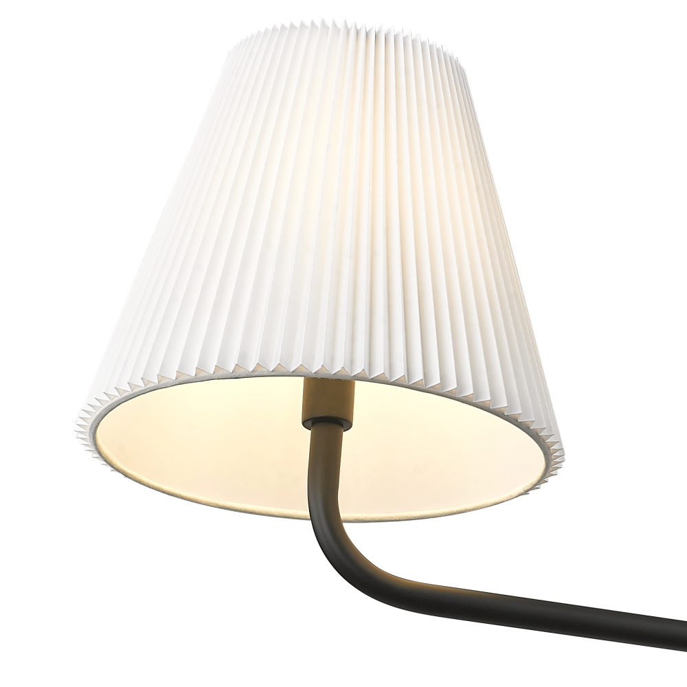 The Ami Family beautifully synthesizes a modern profile with traditional styling to create a thoroughly unique design aesthetic. The fixtures, finished in either matte black or vintage brass, are comprised of crisp, clean lines arcing gently upwards and capped with vintage style white fabric pleated shades. Available as 1-light sconces, 2-light island pendants, and 4-light chandeliers, these fixtures create a light and airy aesthetic for any space.