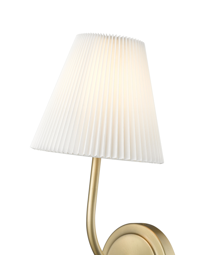 The Ami Family beautifully synthesizes a modern profile with traditional styling to create a thoroughly unique design aesthetic. The fixtures, finished in either matte black or vintage brass, are comprised of crisp, clean lines arcing gently upwards and capped with vintage style white fabric pleated shades. Available as 1-light sconces, 2-light island pendants, and 4-light chandeliers, these fixtures create a light and airy aesthetic for any space.