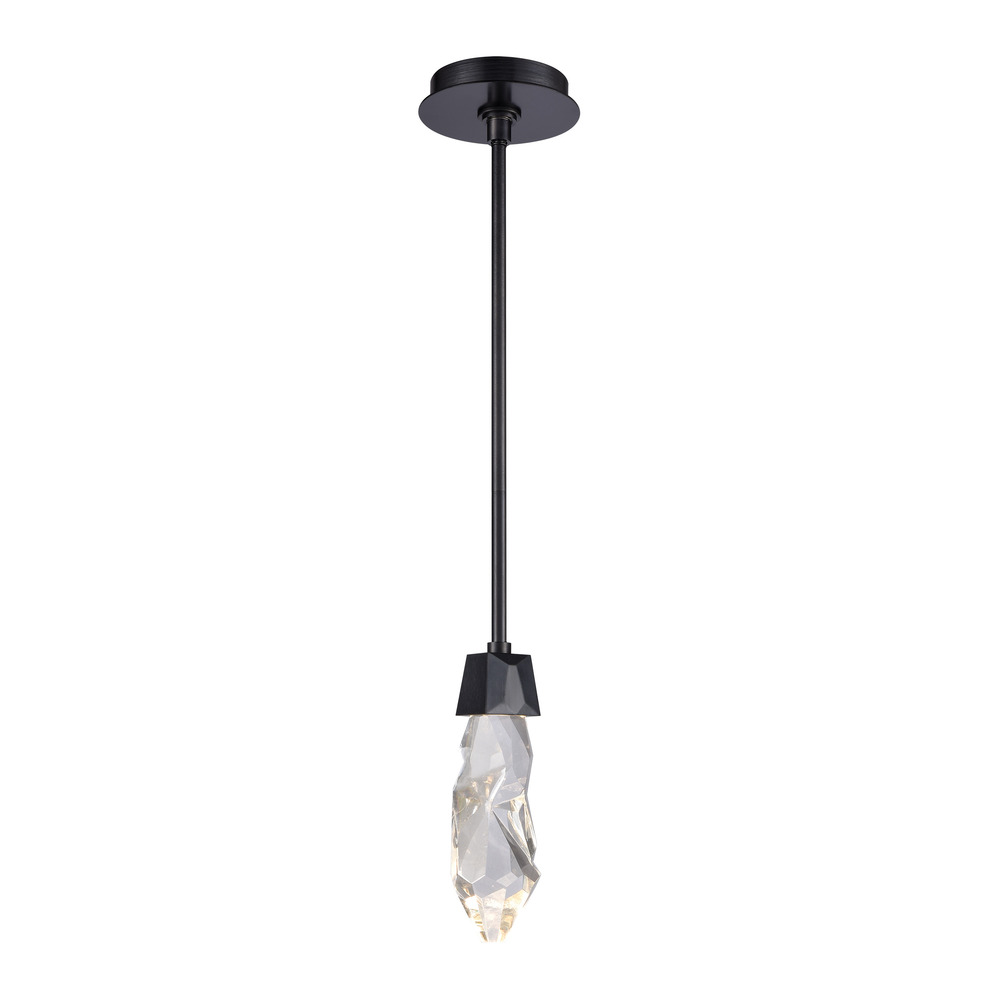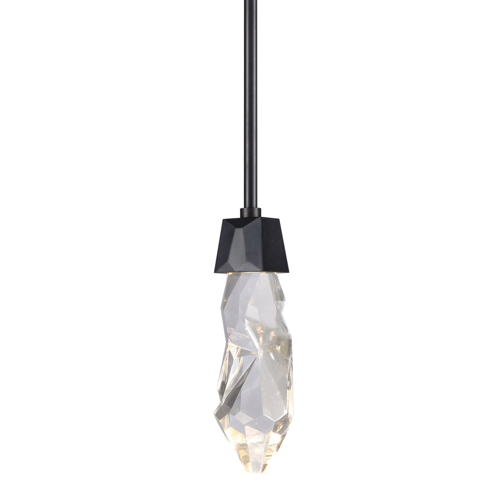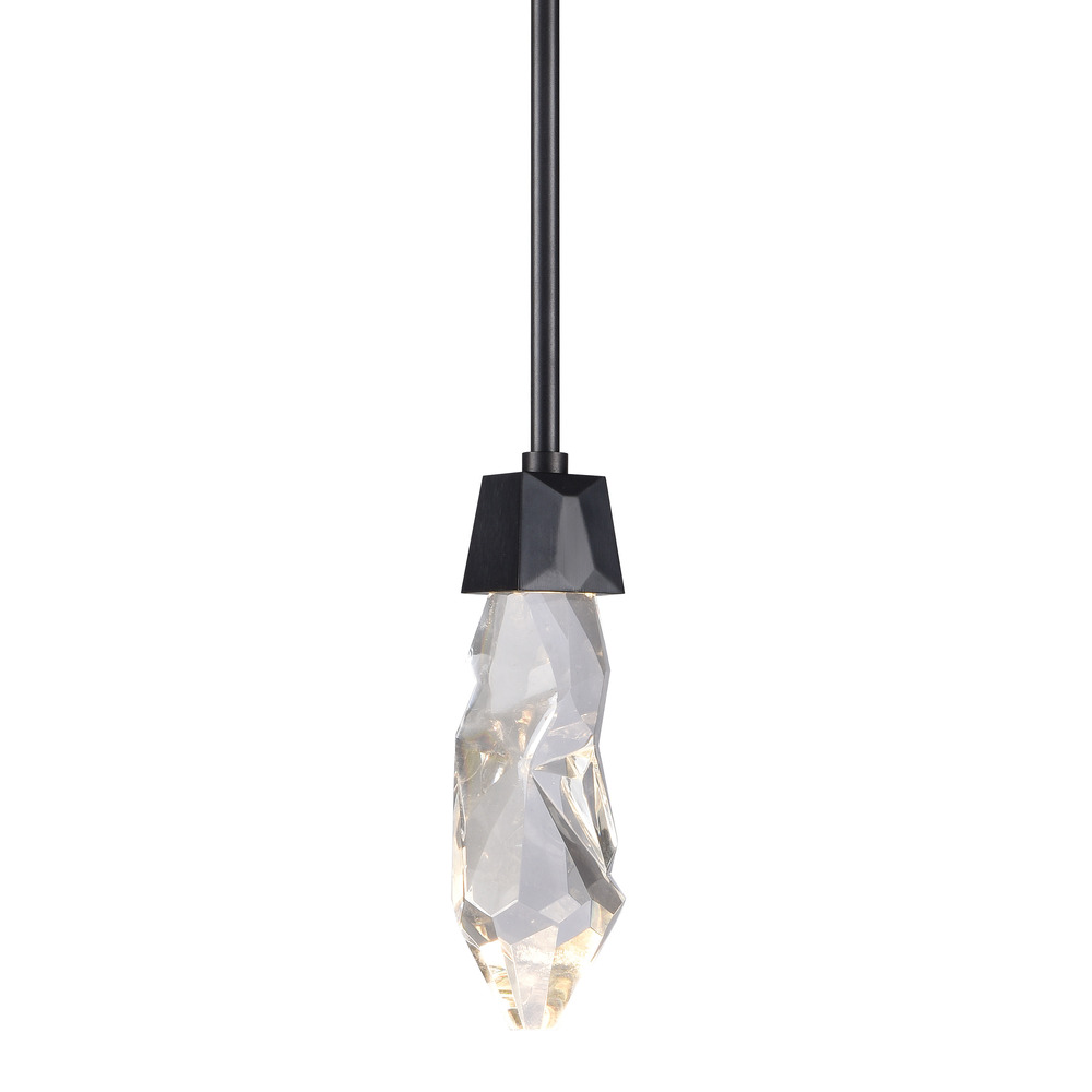 1-Light Inimitable Crystal Mini-Pendant, hand formed and polished crystal, with every turn of the crystal being unique. Refined iron metal with our sleek satin brushed black finish. Integrated Replaceable LED with 3CCT 3000K, 3500K and 4000K.