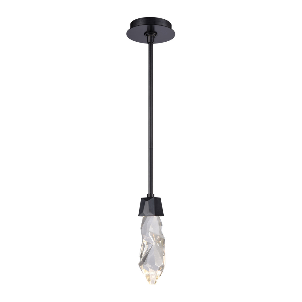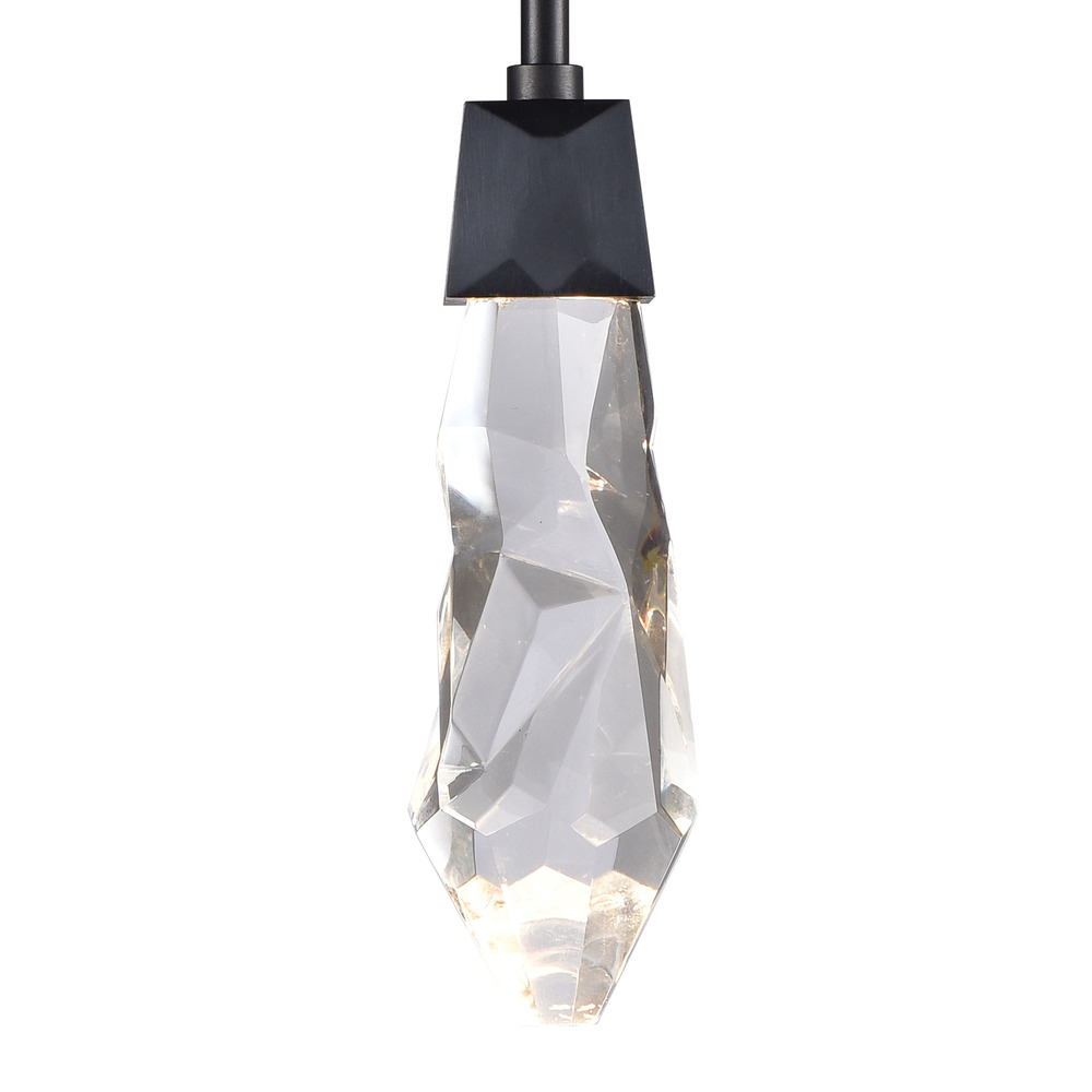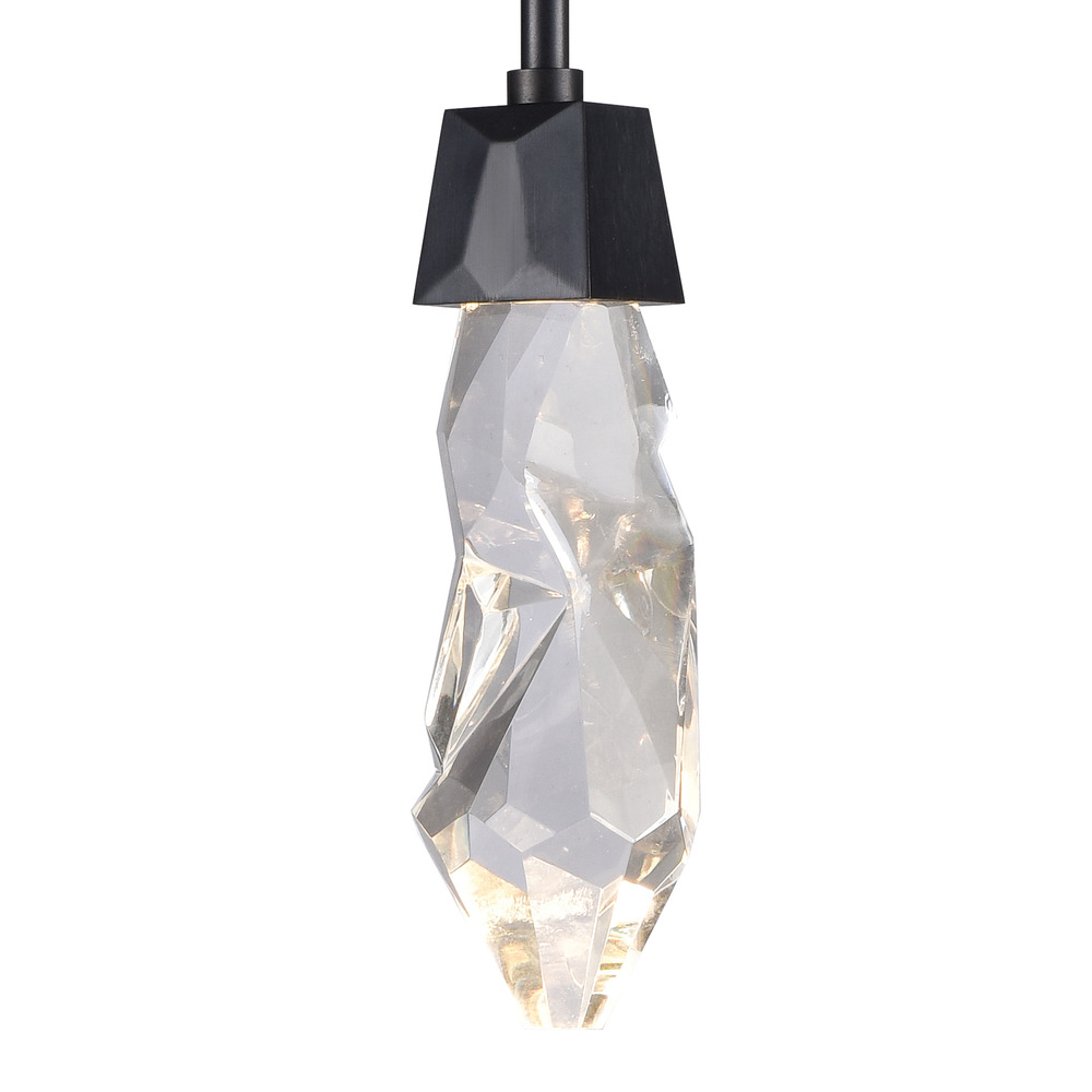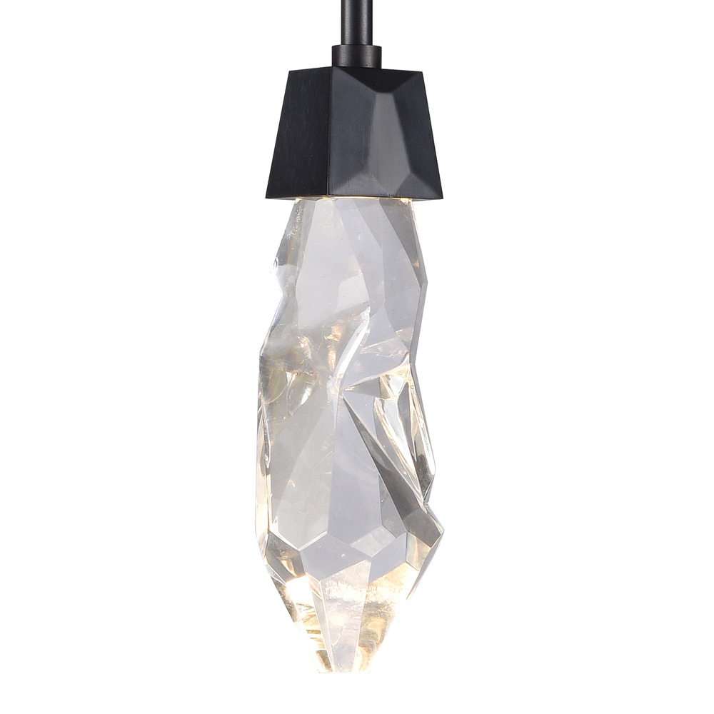 1-Light Inimitable Crystal Mini-Pendant, hand formed and polished crystal, with every turn of the crystal being unique. Refined iron metal with our sleek satin brushed black finish. Integrated Replaceable LED with 3CCT 3000K, 3500K and 4000K.