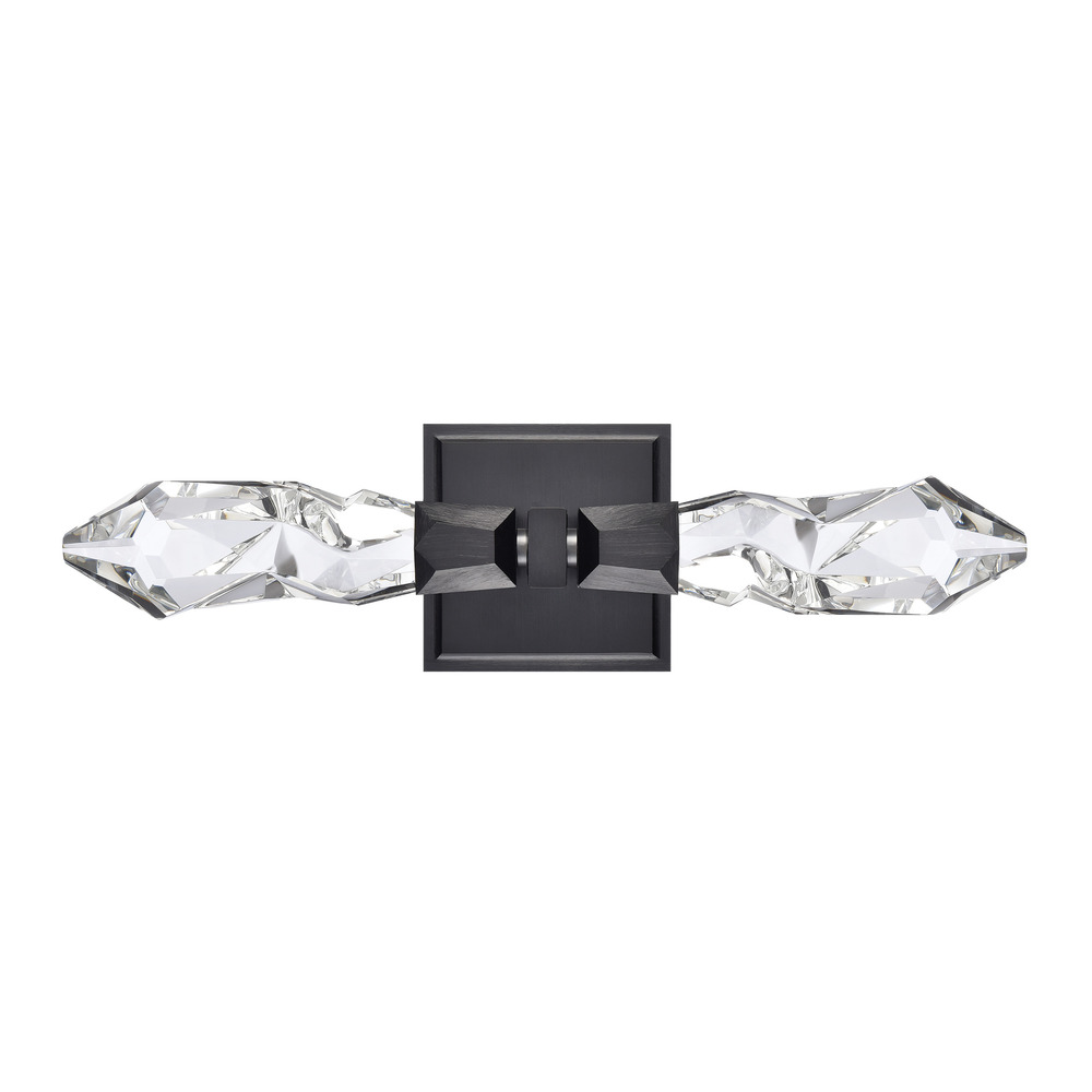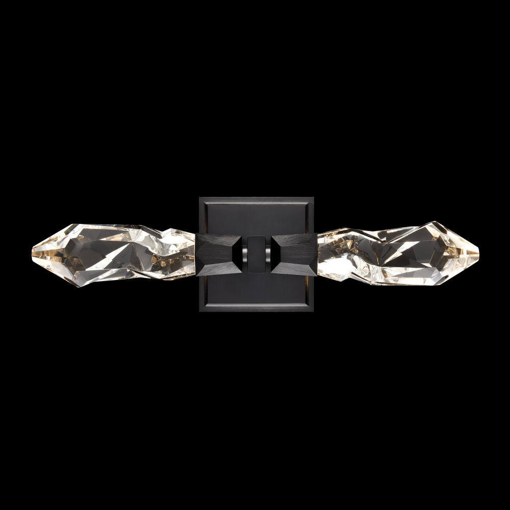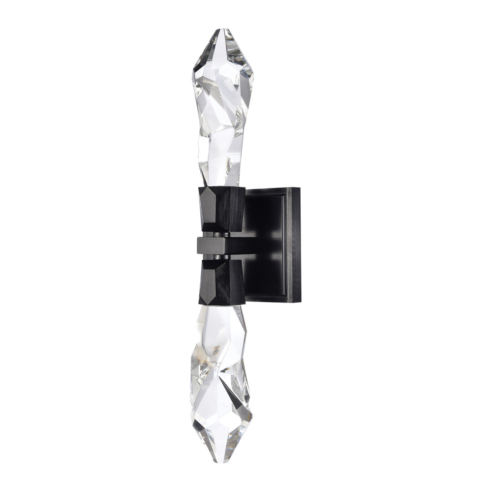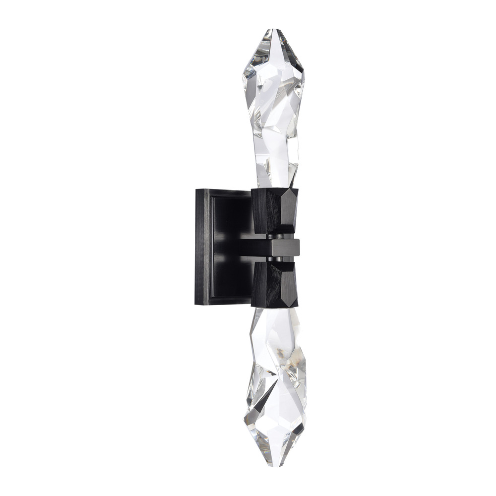 2-Light Inimitable Crystal Duo Wall Sconce, hand formed and polished crystals, with every turn of the crystal being unique. Refined iron metal with our sleek satin brushed black finish. Integrated Replaceable LED with 3CCT 3000K, 3500K and 4000K.
