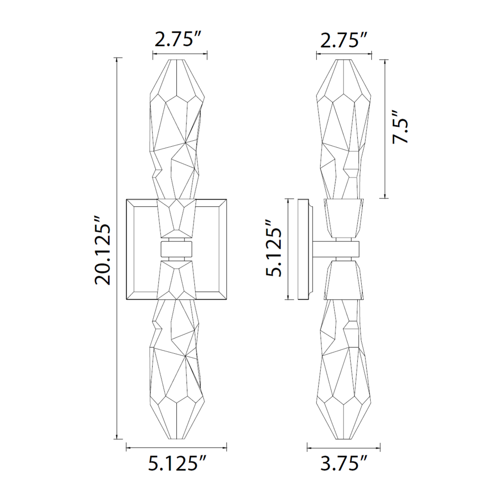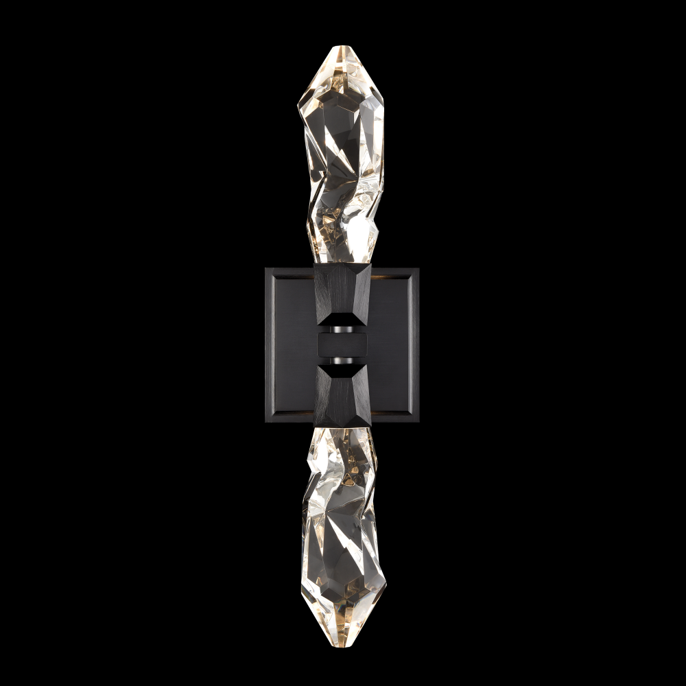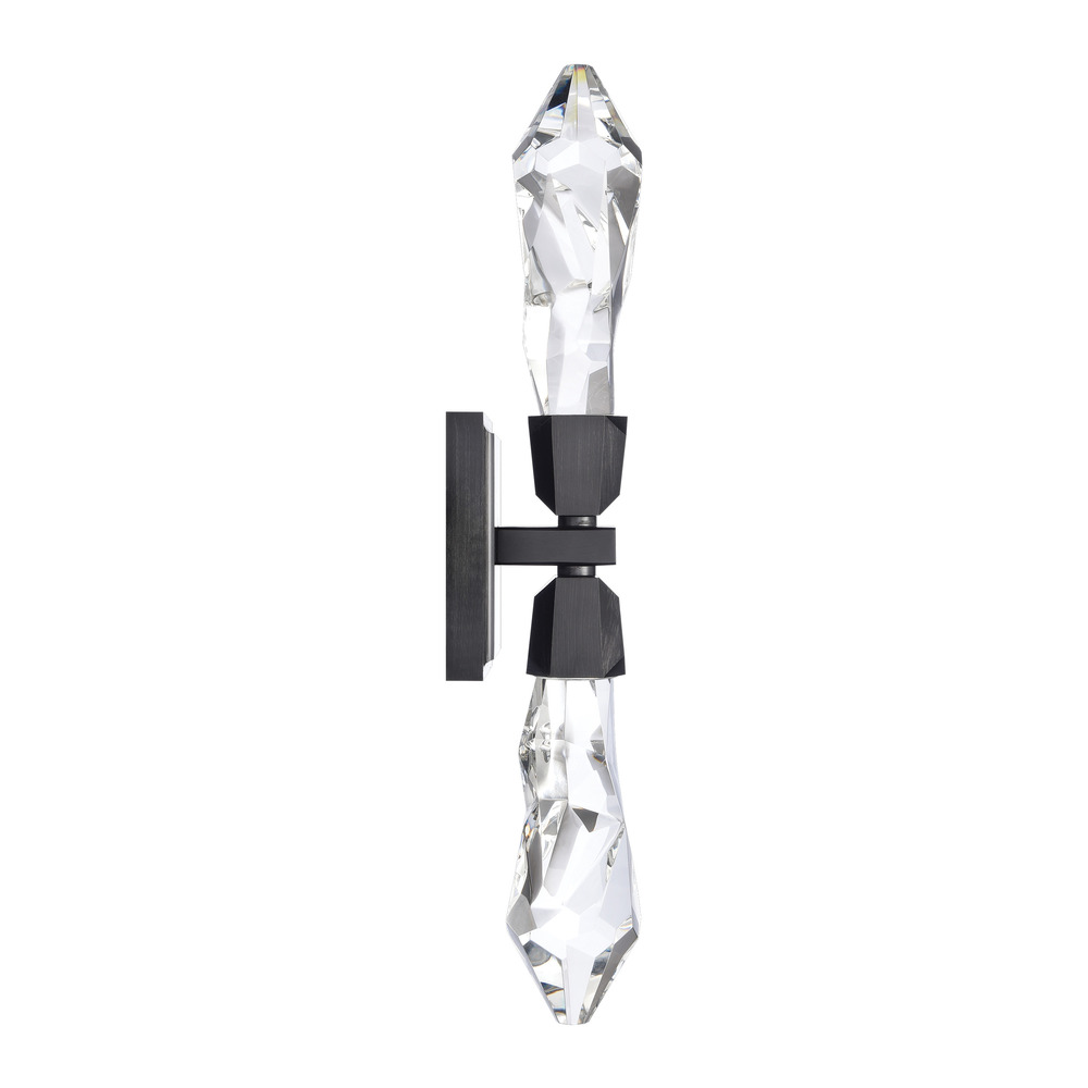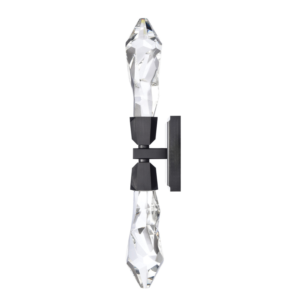 2-Light Inimitable Crystal Duo Wall Sconce, hand formed and polished crystals, with every turn of the crystal being unique. Refined iron metal with our sleek satin brushed black finish. Integrated Replaceable LED with 3CCT 3000K, 3500K and 4000K.