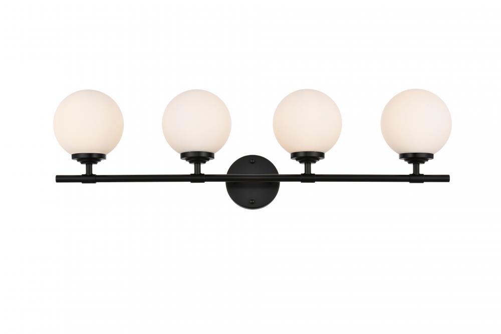 This armed sconce features a streamlined and minimalistic design that complements any space in your home. Shown with the frosted glass shades, this wall sconce is versatile and can be placed in a bathroom,entry way, or hallway. Compatible with dimmers, so you'll have the right amount of light in any given time of the day. The hardwired fixture is safe to use in damp locations. Made from iron with a modern finish, it includes a round backplate and a matching arm that holds in place four 40W bulb ( sold separately). Available in multiple finishes. Can be installed as an uplight or a downlight.