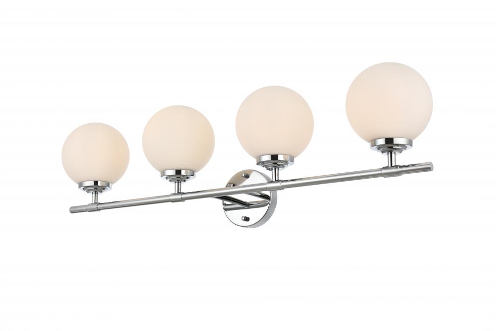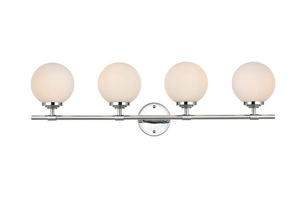 This armed sconce features a streamlined and minimalistic design that complements any space in your home. Shown with the frosted glass shades, this wall sconce is versatile and can be placed in a bathroom,entry way, or hallway. Compatible with dimmers, so you'll have the right amount of light in any given time of the day. The hardwired fixture is safe to use in damp locations. Made from iron with a modern finish, it includes a round backplate and a matching arm that holds in place four 40W bulb ( sold separately). Available in multiple finishes. Can be installed as an uplight or a downlight.