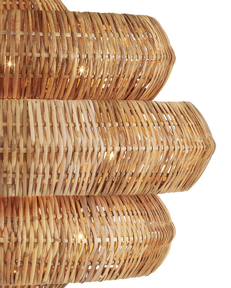 Painstakingly woven by artisans who use traditional techniques, the Antibes Chandelier is a marriage of artistry and high-quality construction. Natural rattan forms the body of this geometric chandelier supported by a wrought iron frame in a khaki finish. This rattan chandelier is one of several fixtures in the Antibes family. Adjustable from 30.5" to 98.5" with use of included chain/rod kit/cable. If your space calls for a longer drop, additional chain/rods/cable is available for purchase.