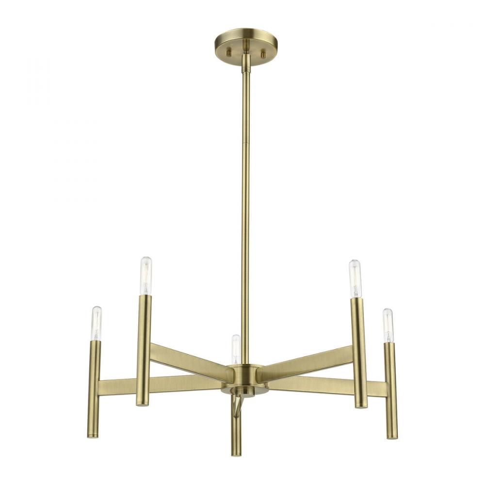 Exposed bulb sockets are fixed over antique brass to create an eclectic look perfect for mid century modern or transitional spaces wanting an industrial touch.