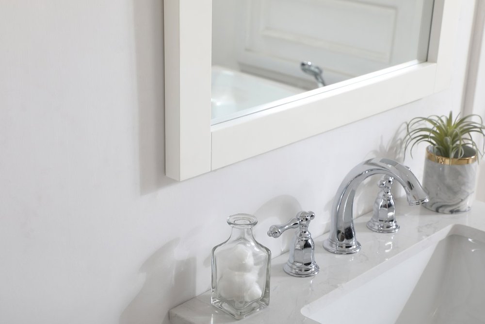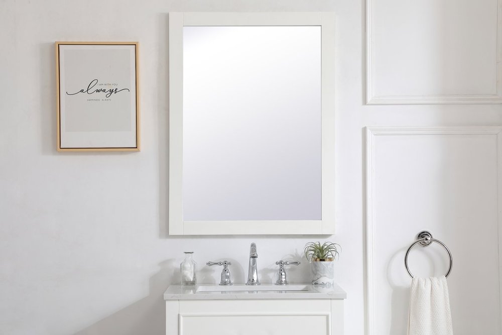 Simply handsome, and perfectly contemporary, this rectangular mirror is bold in style, yet modernly minimalistic. Perfectly framed with a white finish border, this mirror will surely complement your vanities and walls.