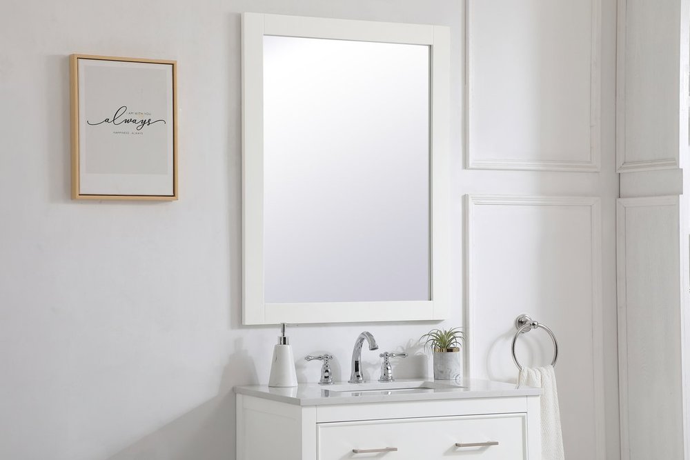 Simply handsome, and perfectly contemporary, this rectangular mirror is bold in style, yet modernly minimalistic. Perfectly framed with a white finish border, this mirror will surely complement your vanities and walls.