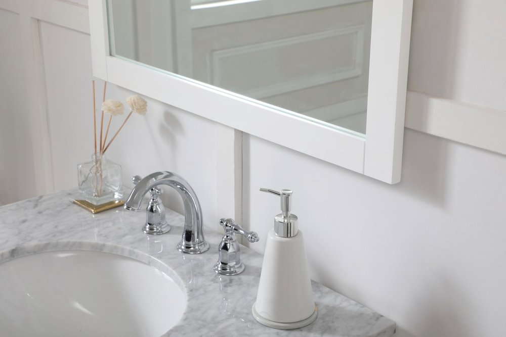 Simply handsome, and perfectly contemporary, this rectangular mirror is bold in style, yet modernly minimalistic. Perfectly framed with a white finish border, this mirror will surely complement your vanities and walls.