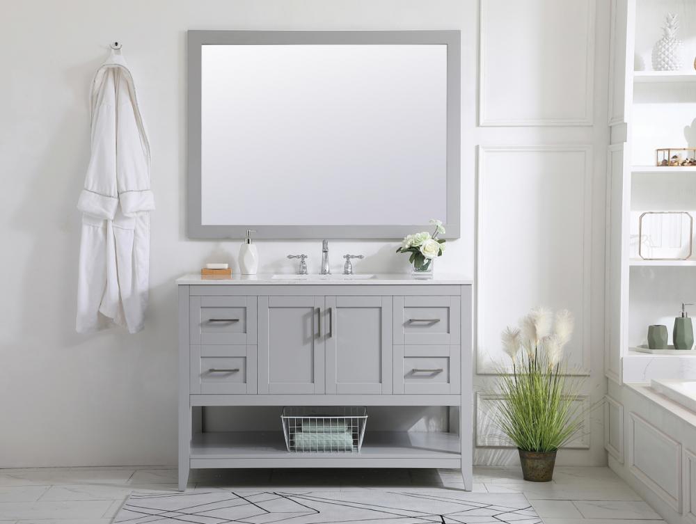 Simply handsome, and perfectly contemporary, this rectangular mirror is bold in style, yet modernly minimalistic. Perfectly framed with a grey finish border, this mirror will surely complement your vanities and walls.