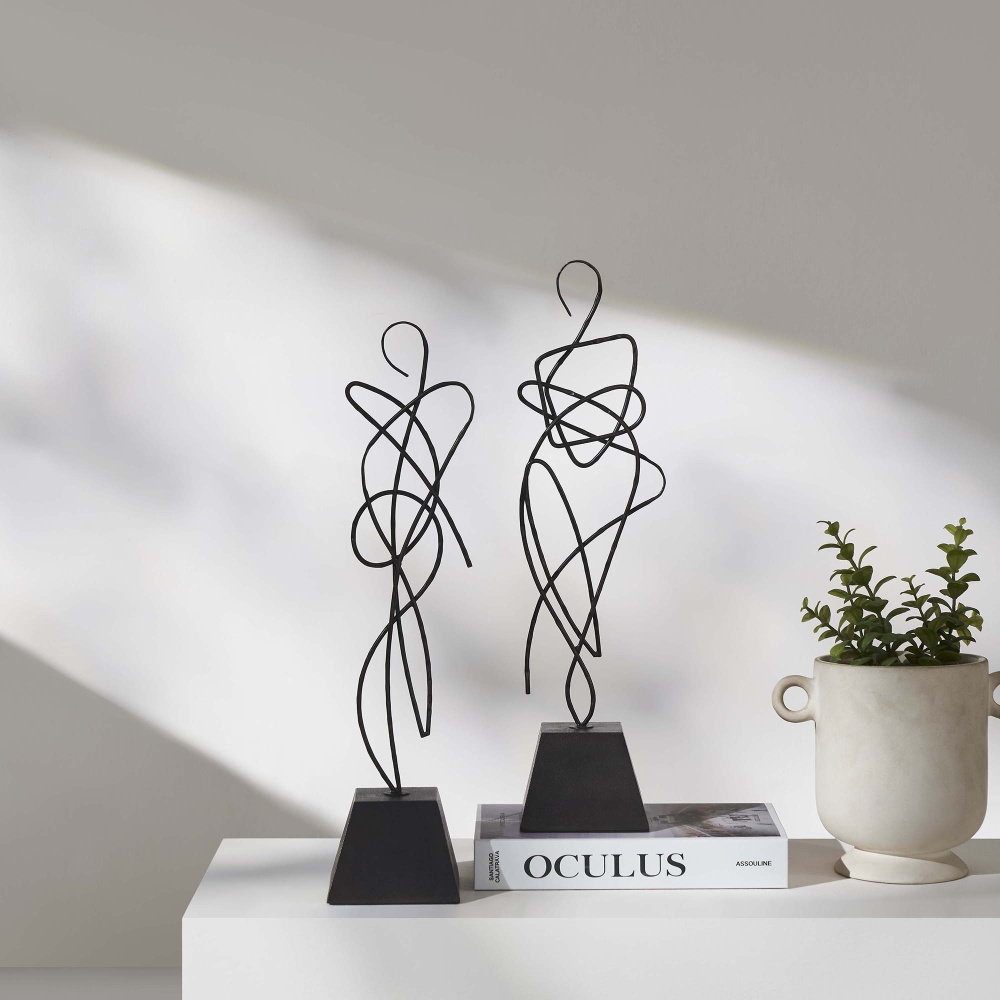 A melody is captured within this set of decor accessories’ artful structures. With bold bases and cast aluminum constructions, these pieces hold strength and delicacy in equal measure. Placed in a contemporary or classic interior, these decorative statues envelop the space with a creative energy, while integrating effortlessly into their surroundings.